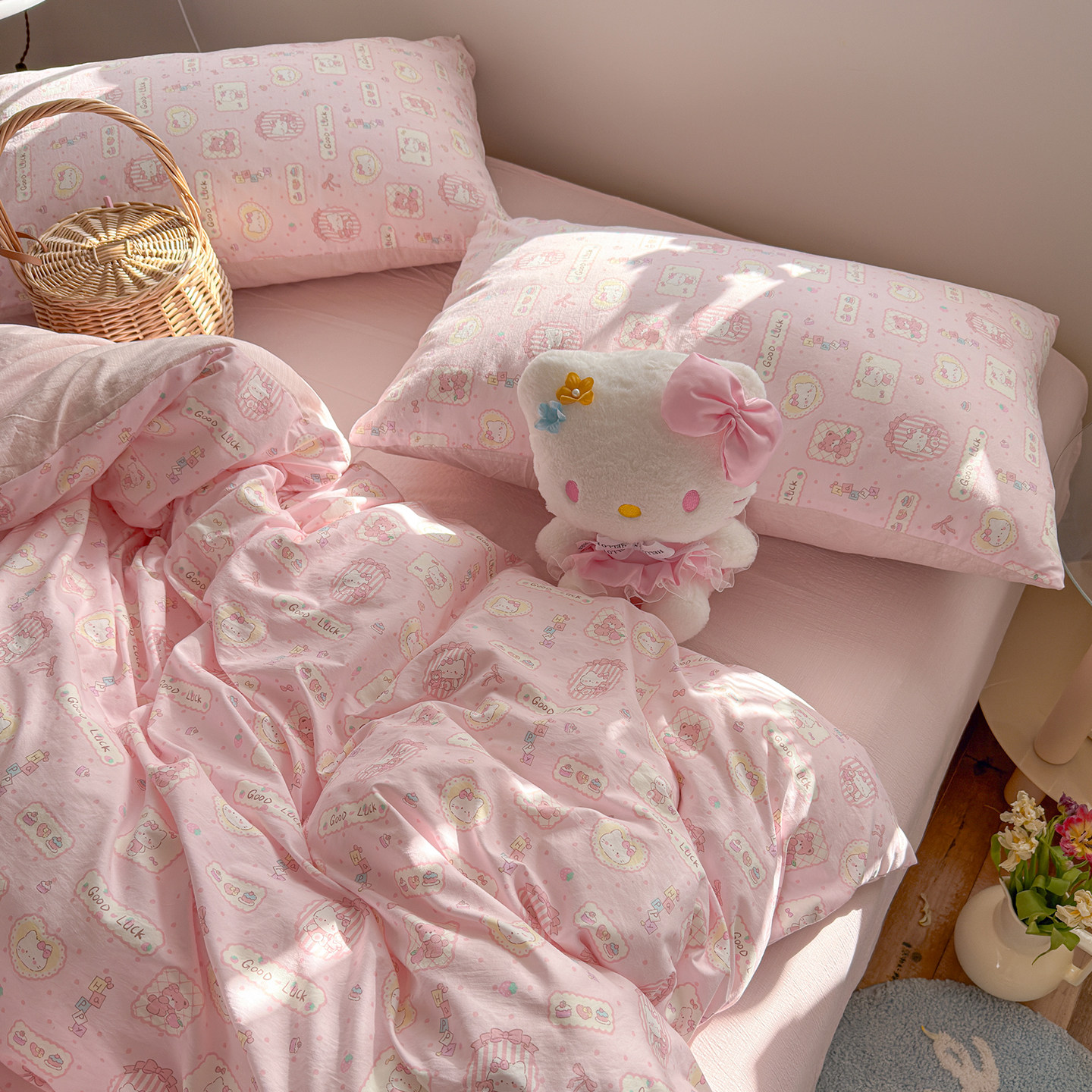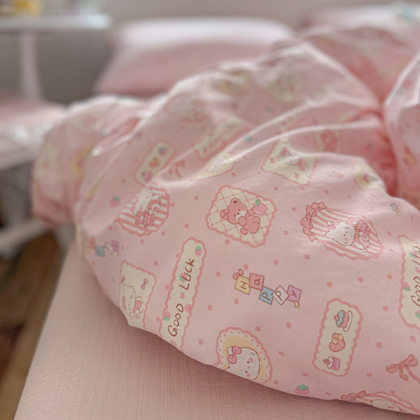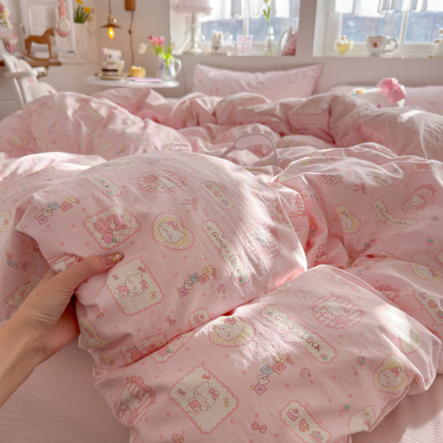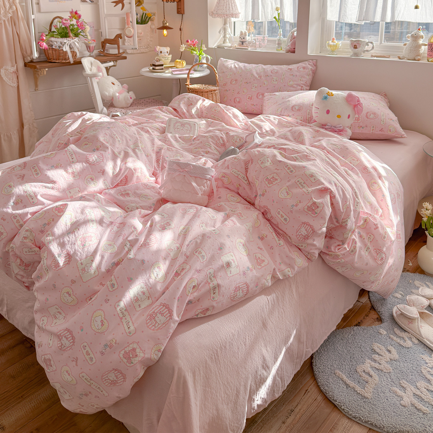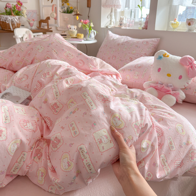 新款A类纯棉四件套古法水洗棉少女心印花被套学生宿舍床单三件套4