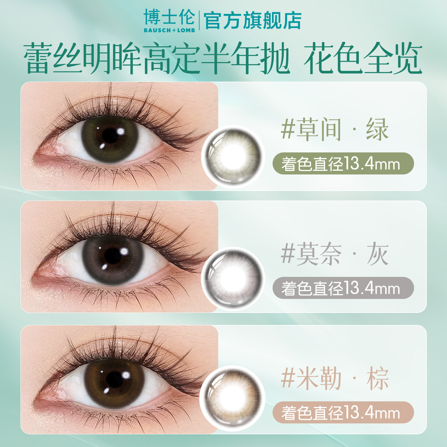 博士伦美瞳半年抛彩色隐形眼镜近视蕾丝闪眸高定系列水凝胶1片