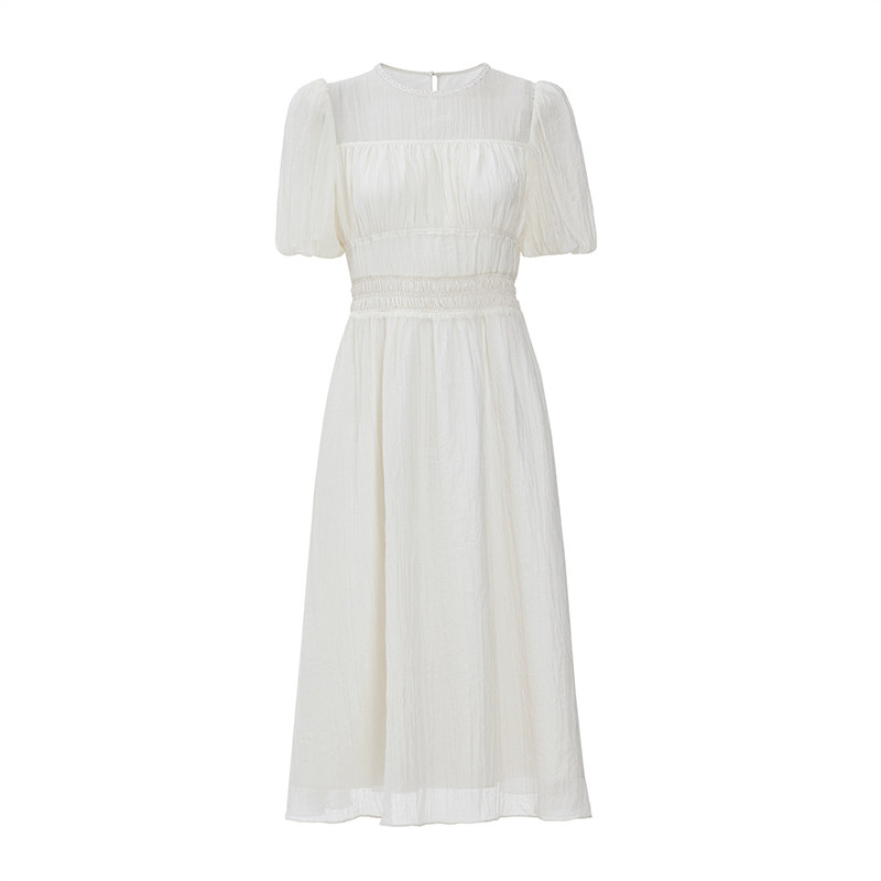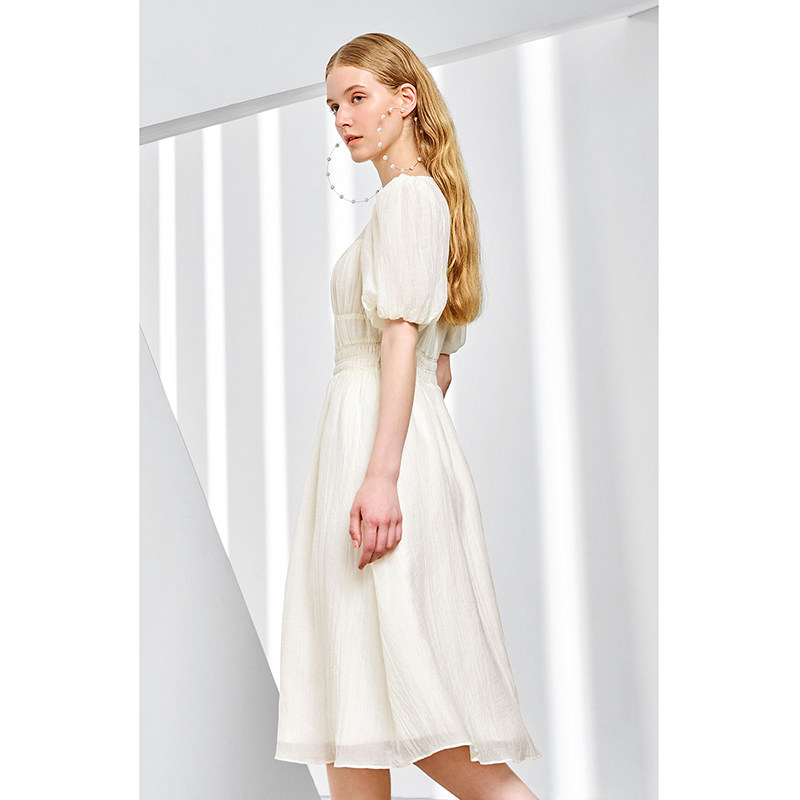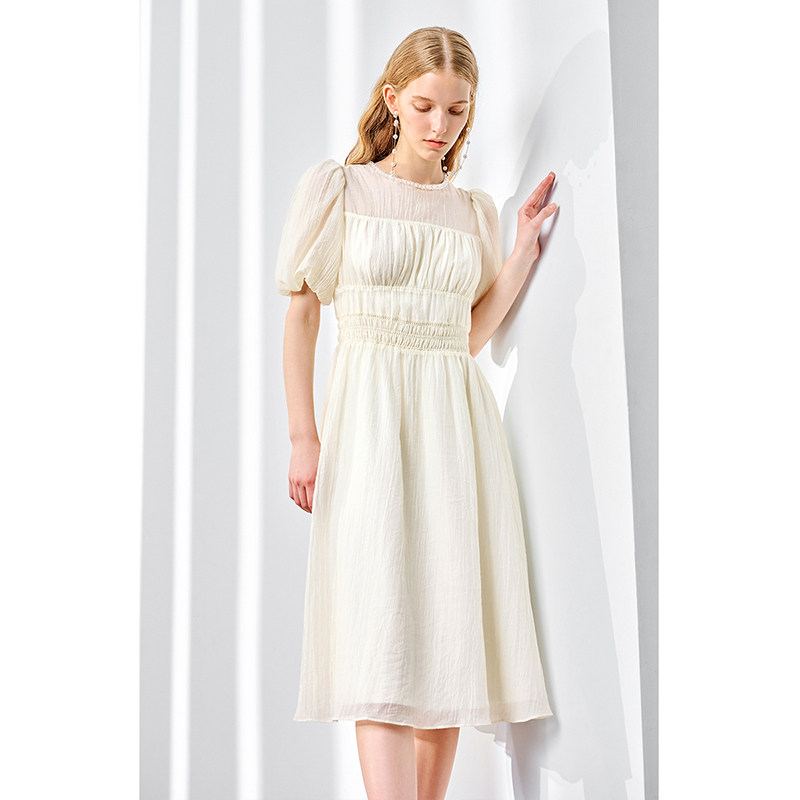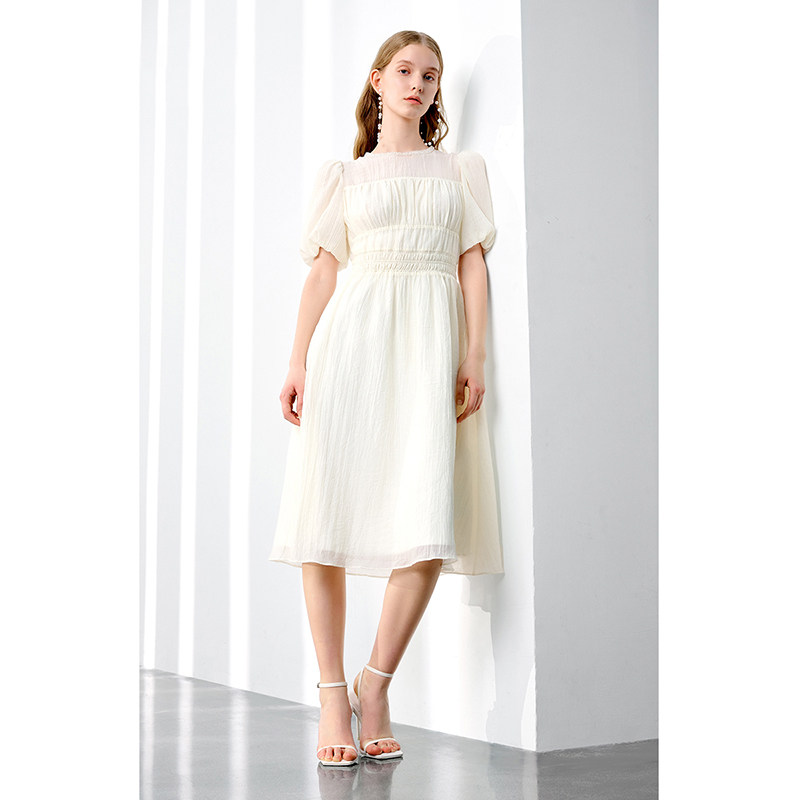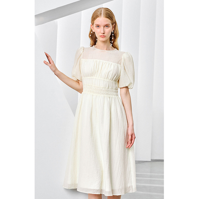 ochirly欧时力 薄纱绉桔梗法式连衣裙早秋气质显瘦温柔风