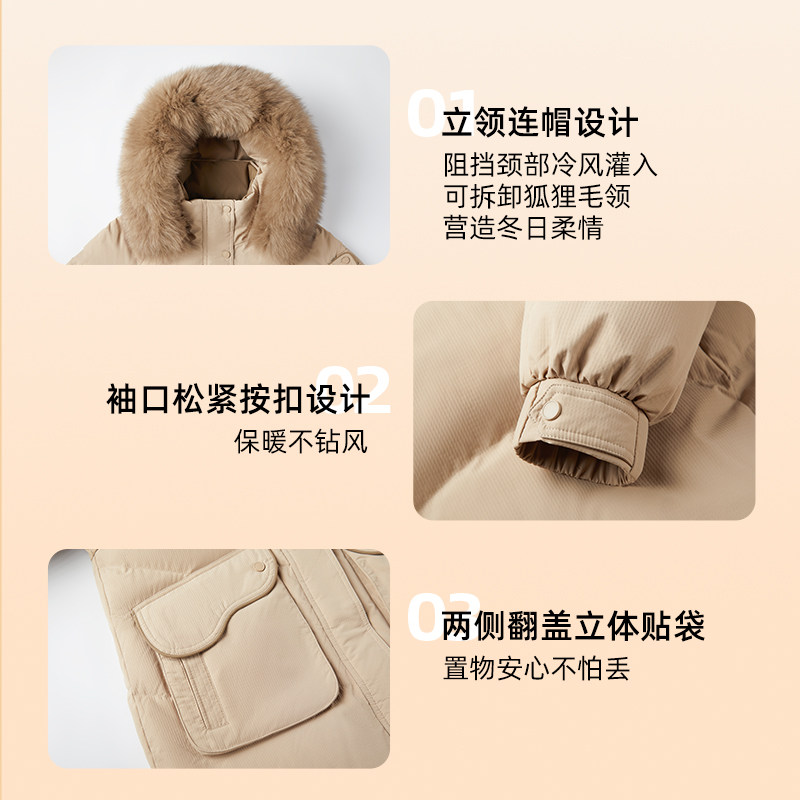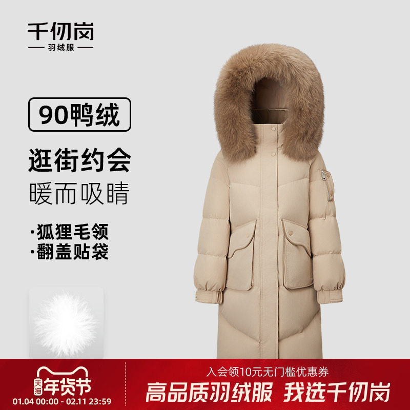 千仞岗2025秋冬羽绒服新款长款狐狸毛领连帽保暖通勤气质时尚简约