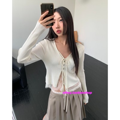 eihey诶嘿2026年新款假两件拼接蕾丝荷叶边针织开衫辣妹风上衣女