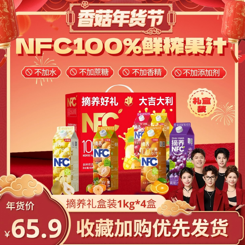 【香菇超级年货节】摘养100%NFC果汁橙胡萝卜汁葡萄汁饮料送礼盒