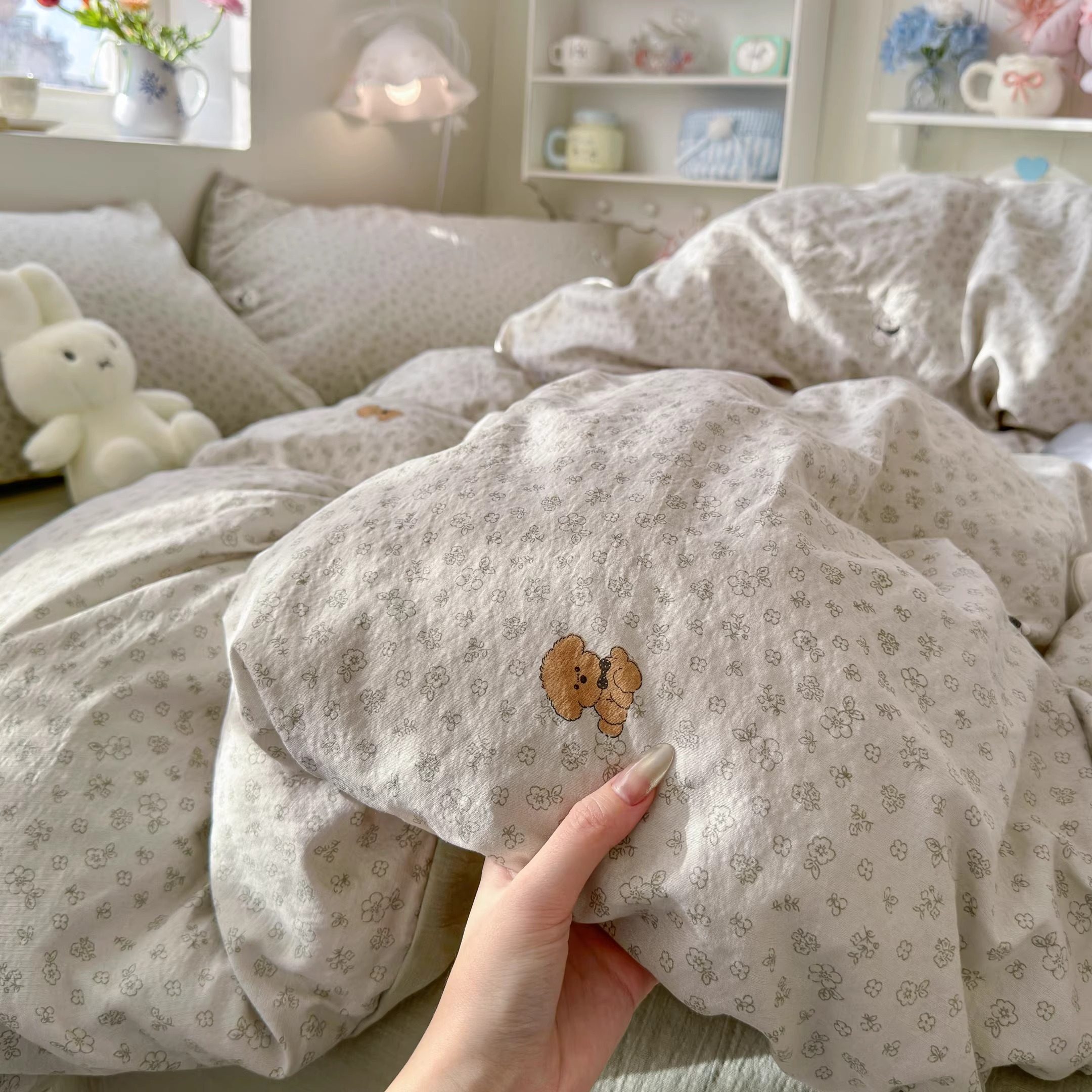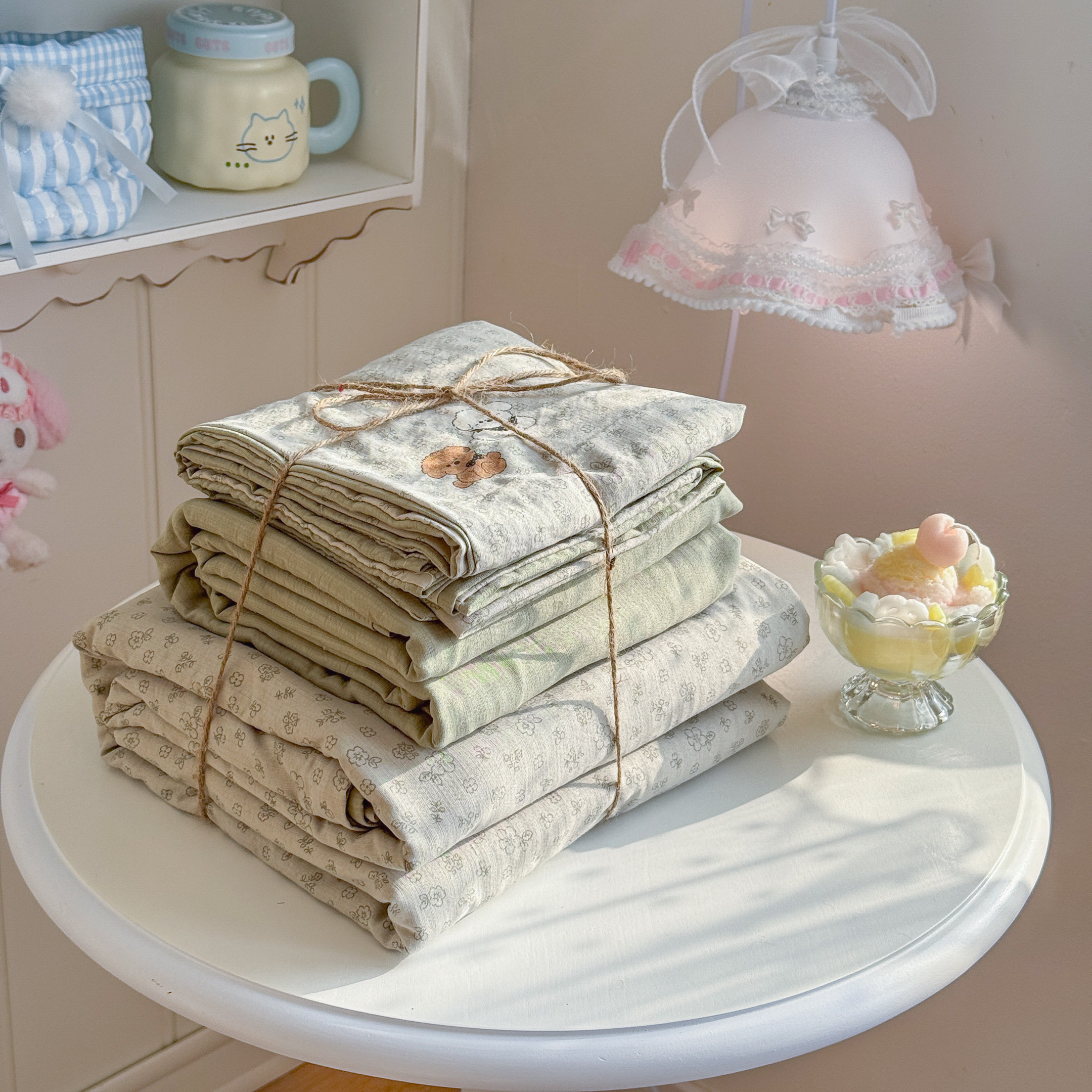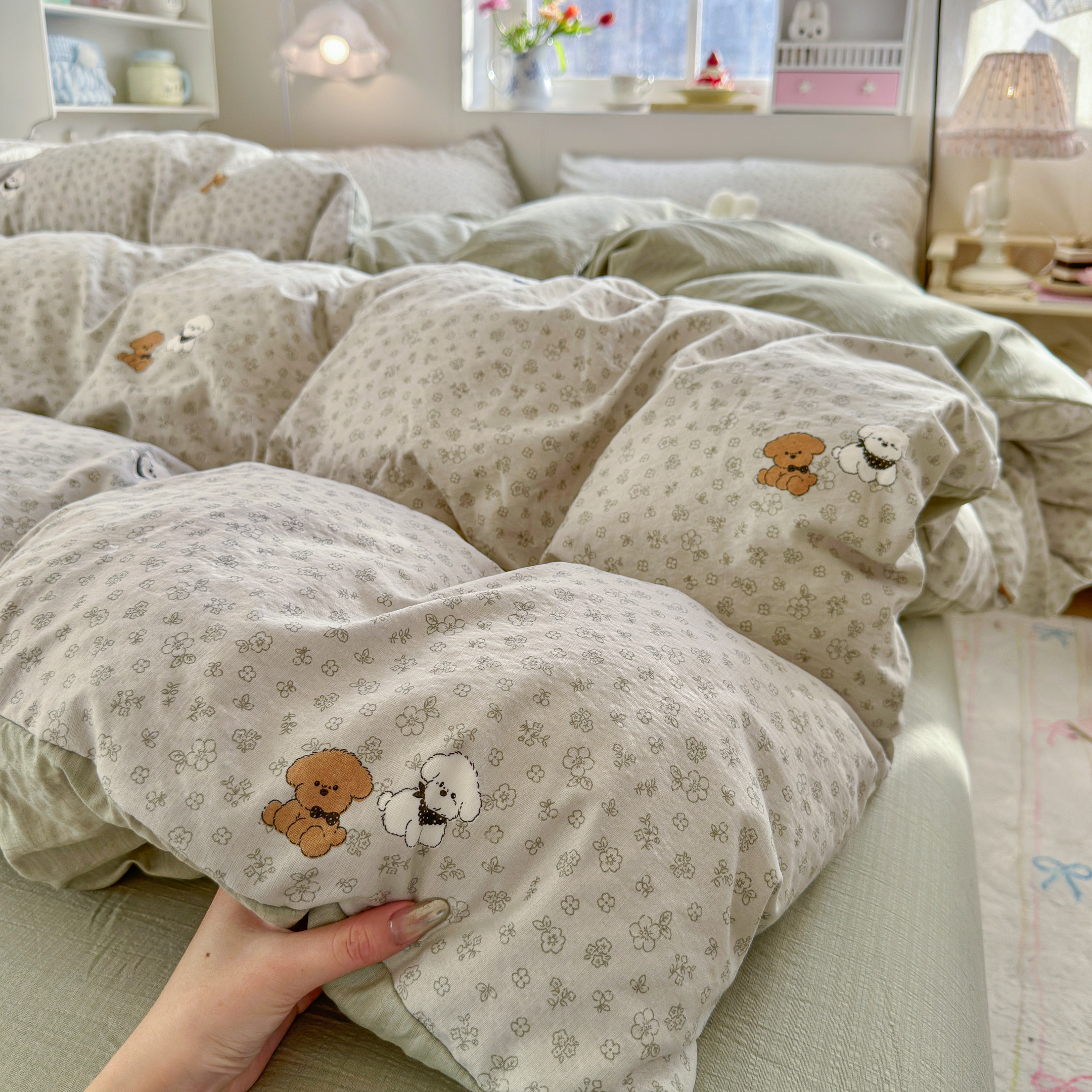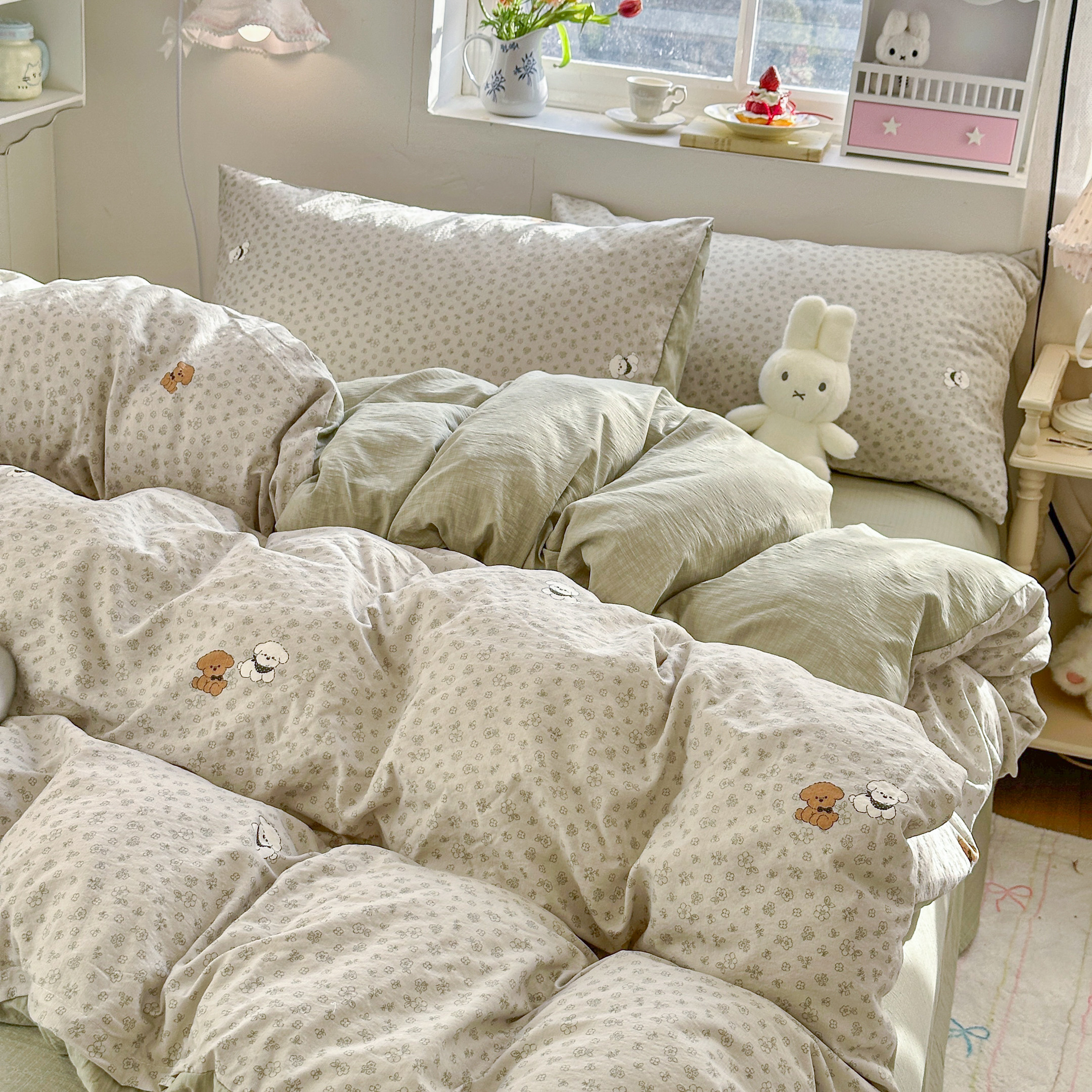 A类床上四件套纯棉全棉新款碎花双层纱床单件被套学生宿舍三件套4