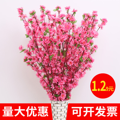 仿真桃花枝假花单支干花樱花客厅摆件树枝腊梅花绢花假树造景装饰