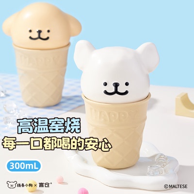 言仓线条小狗雪糕杯马克杯家用水杯陶瓷杯实用情侣新年生日礼物