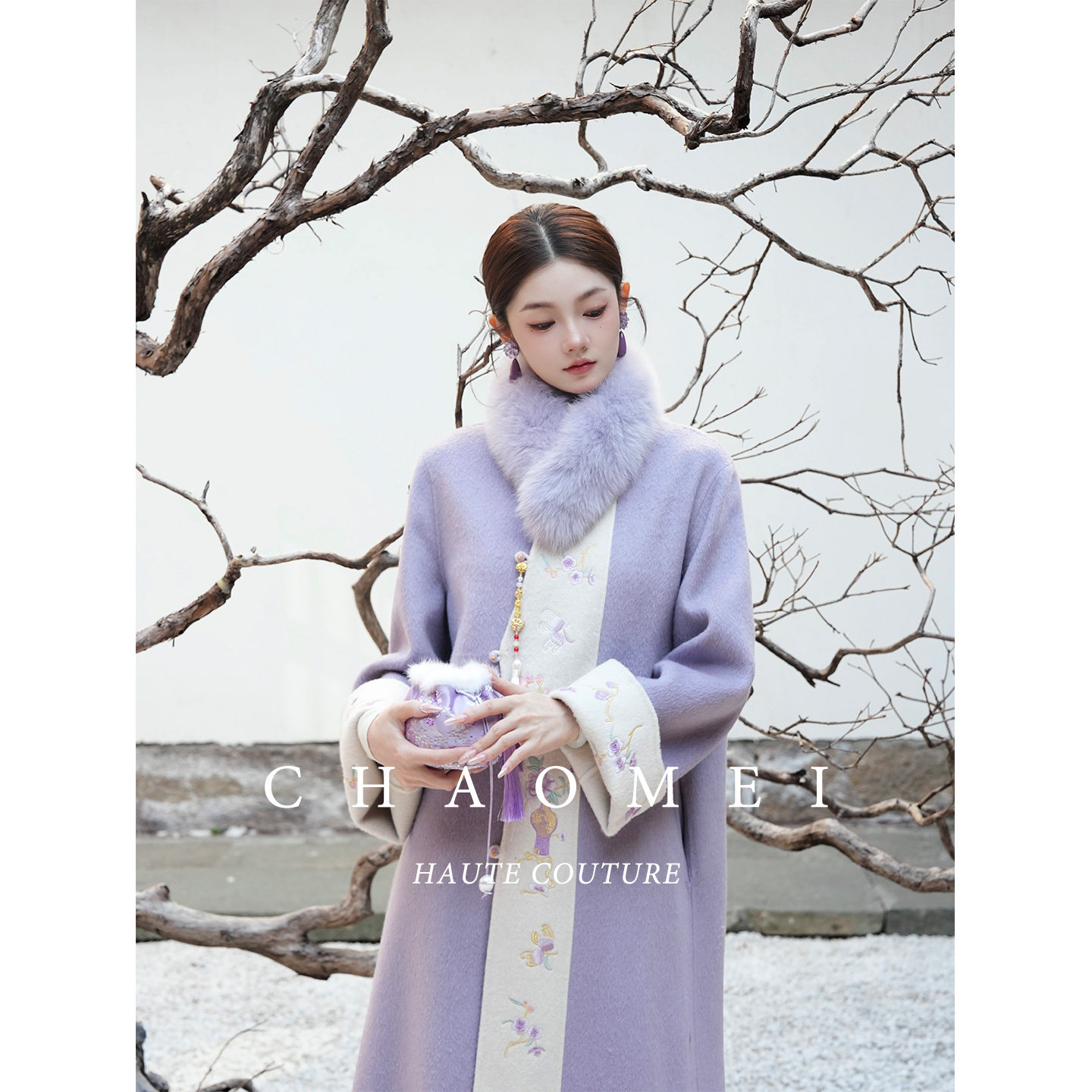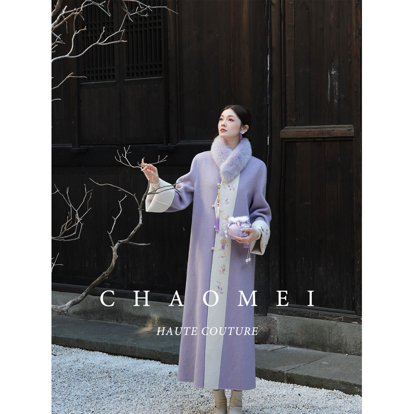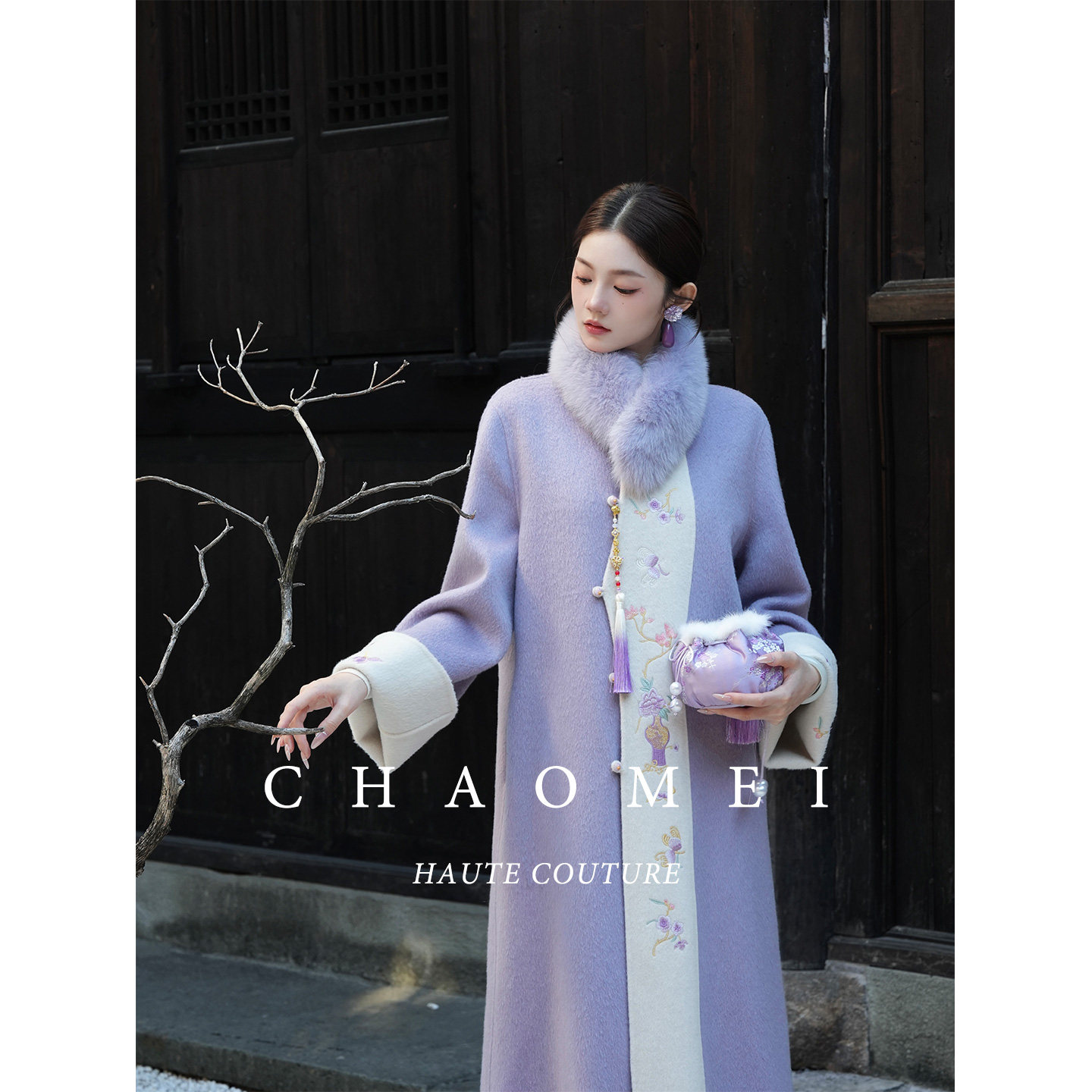 冯(CHAOMEI【紫玉秋香】新中式双面可穿定位刺绣绵羊毛毛呢大衣