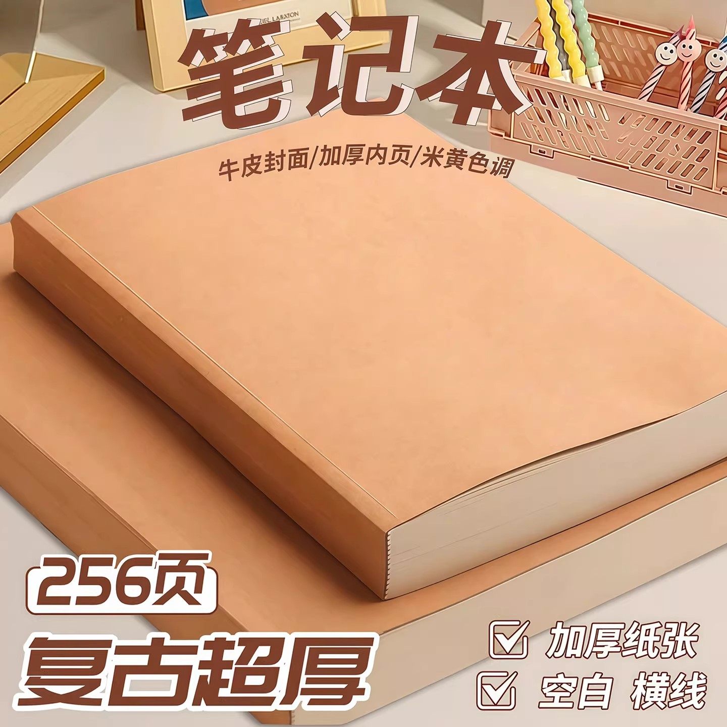 复古牛皮纸笔记本子空白本简约记事本高颜值A5草稿本加厚横线内页