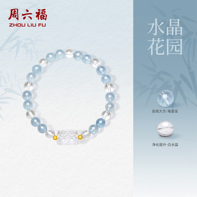 周六福18k水晶手串女蔚蓝之境海蓝宝白水晶手链招财半宝新年礼物