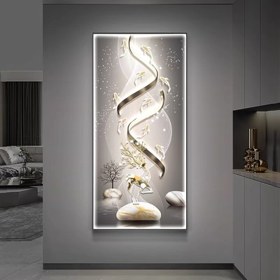 现代简约高端玄关装饰画入户正对门轻奢高级感走廊过道挂画带灯