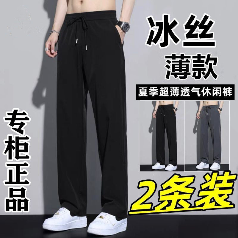 冰丝裤子男士薄款直筒宽松长裤大码运动速干2025夏季春秋休闲裤男