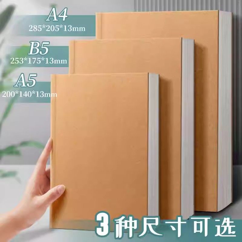 A4超厚牛皮纸笔记本本子加厚加大本子b5简约考研方格横线a5牛皮本