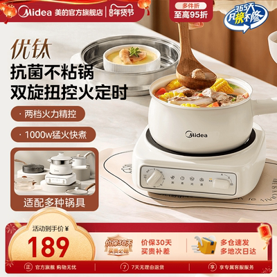 美的定时电煮锅家用宿舍多功能小型分体优钛电火锅电炒锅小电锅