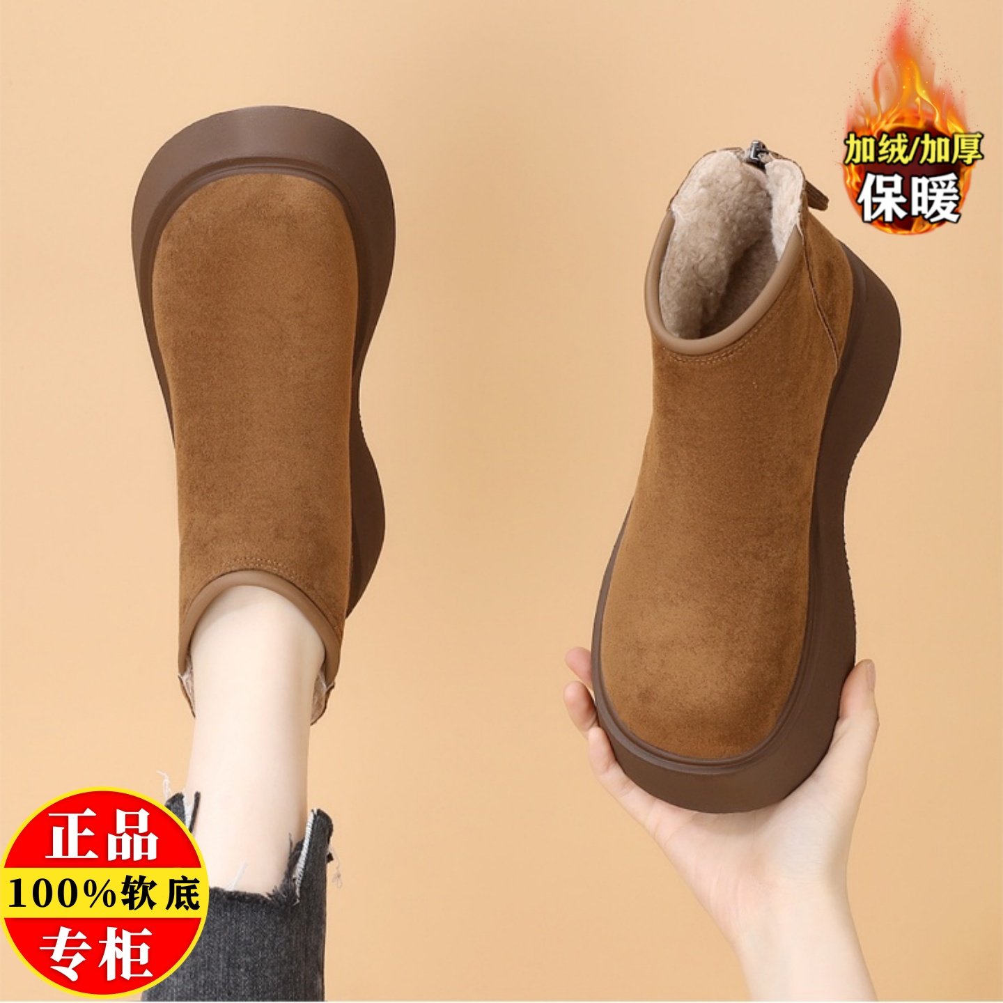 品牌真皮厚底雪地靴女2025冬季新款加绒勃肯短靴防滑保暖大棉鞋子