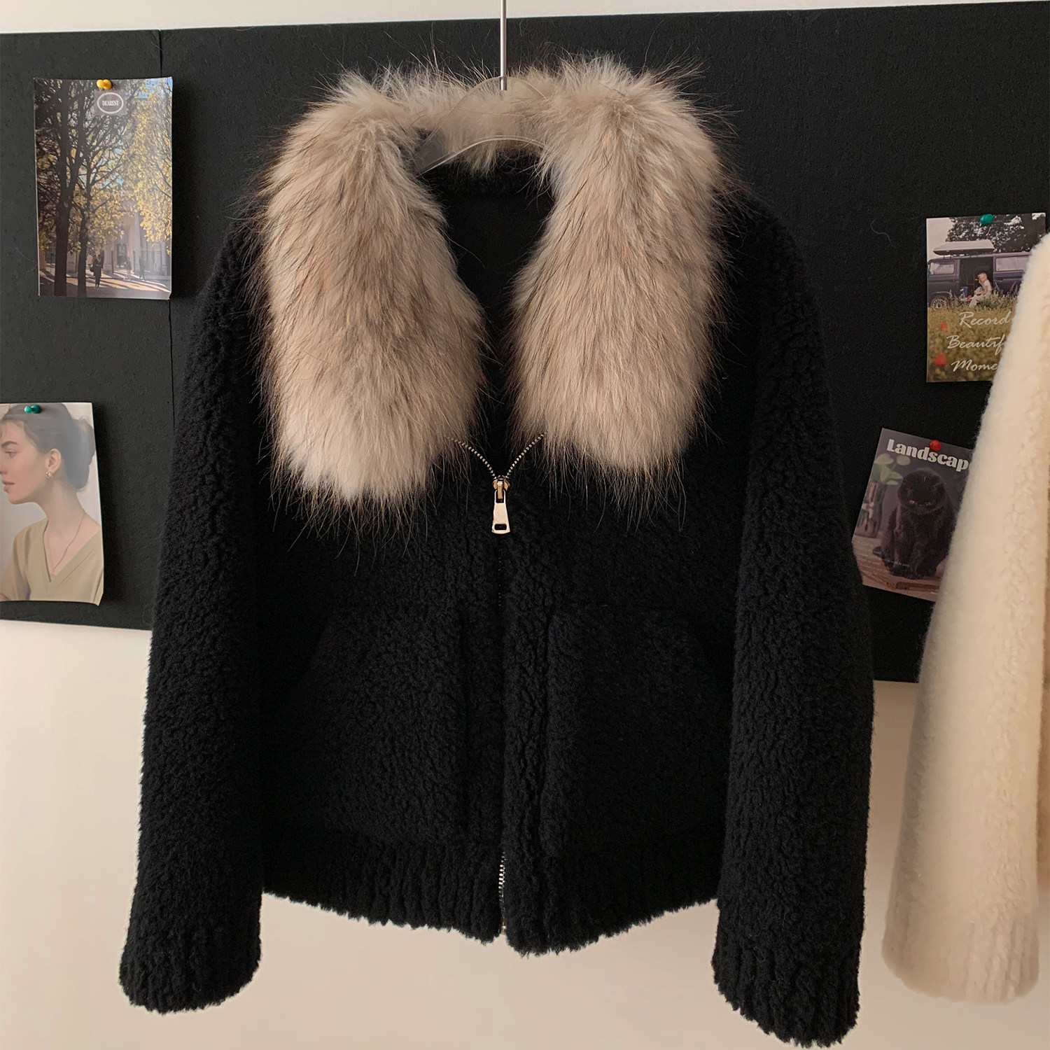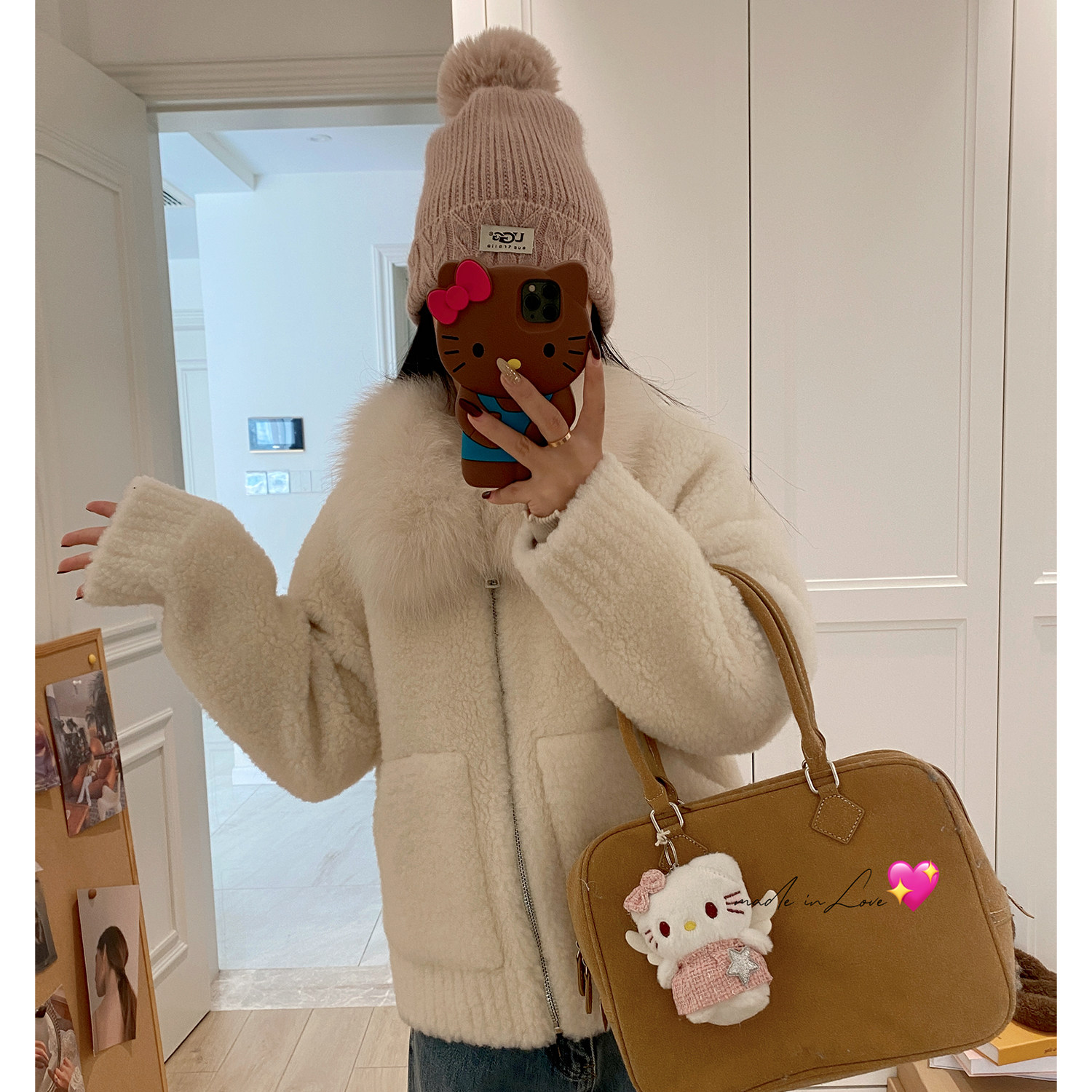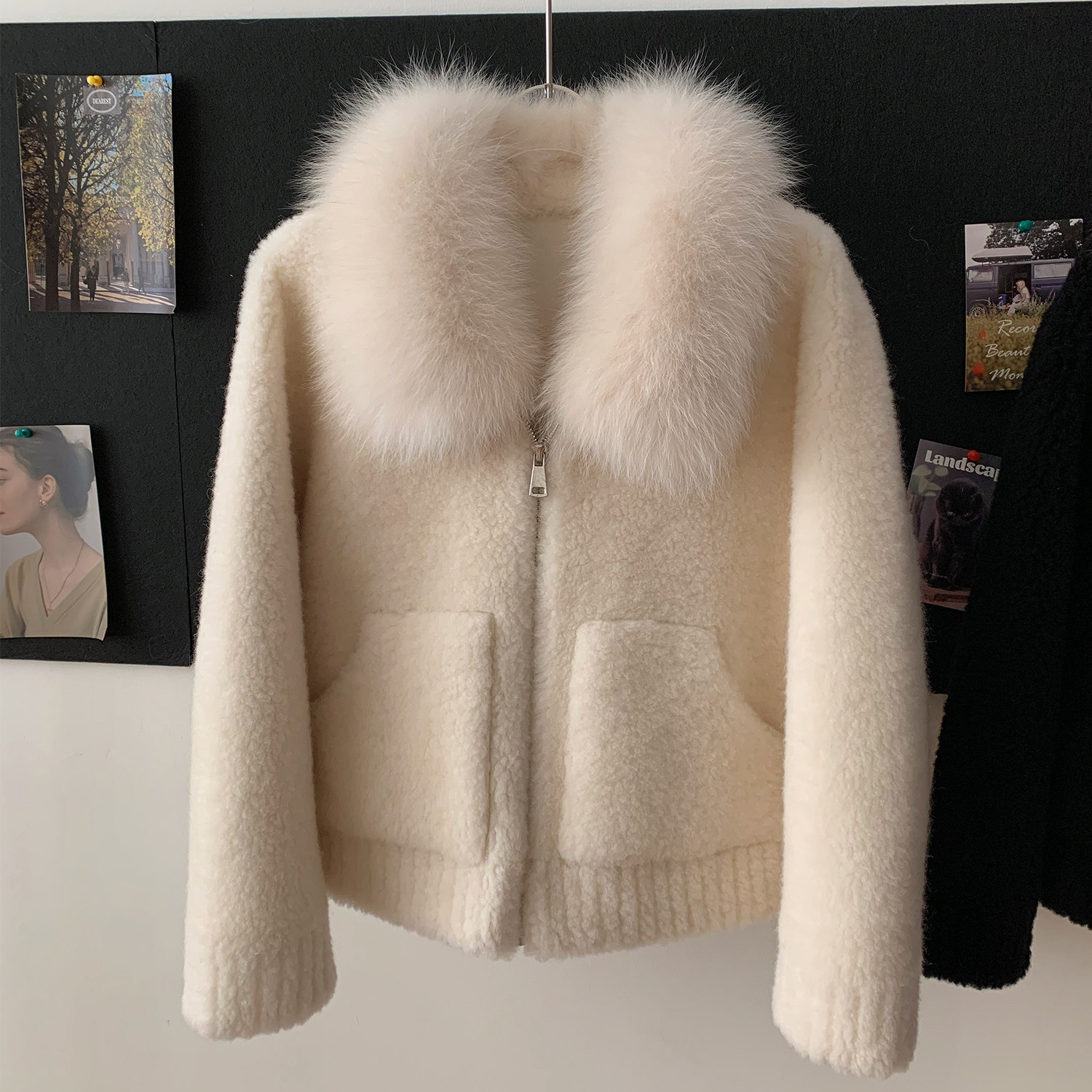 雪境漫游/100羊羔毛皮毛一体狐狸毛领大衣女秋冬加厚皮草毛毛外套