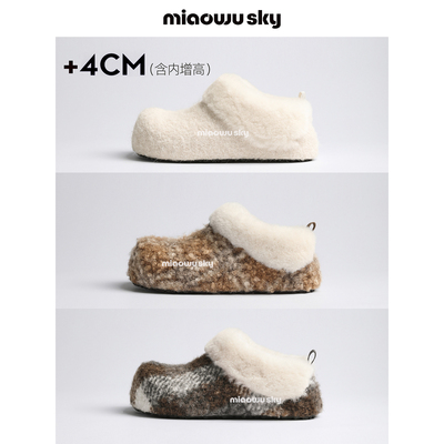 喵唔的天空呢子布面包勃肯鞋女冬外穿内增高毛毛棉鞋包头保暖拖鞋