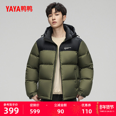 鸭鸭运动户外风90鸭绒600高蓬短款经典拼色面包羽绒服25秋冬新款