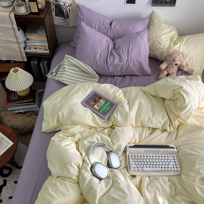 ins纯色混搭四件套A类母婴级床笠款被套床单人学生宿舍三件套床品