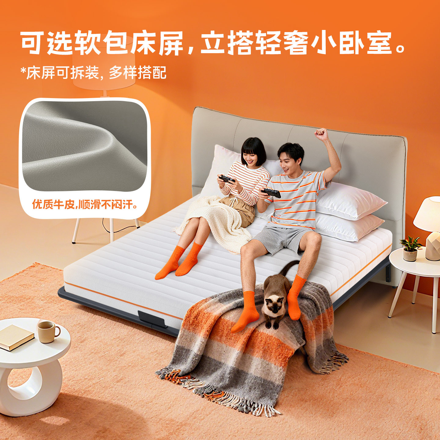 【新品】金可儿现代简约真皮艺床 主卧大床次卧悬浮床架 巴卡
