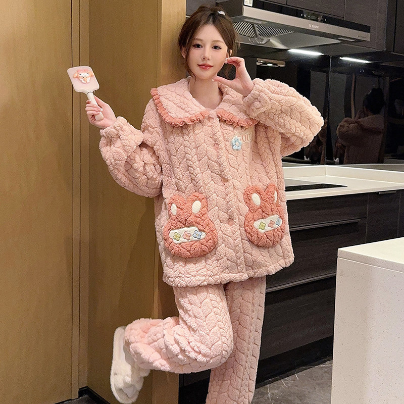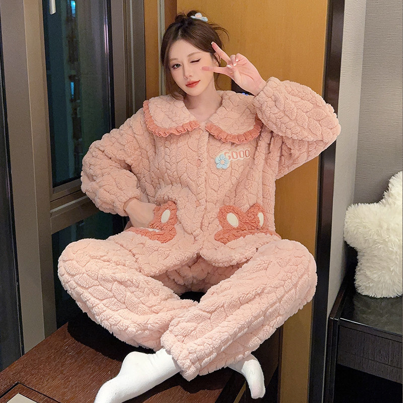 睡衣女秋冬珊瑚绒加厚保暖加肥大码200斤可爱卡通法兰绒家居服冬