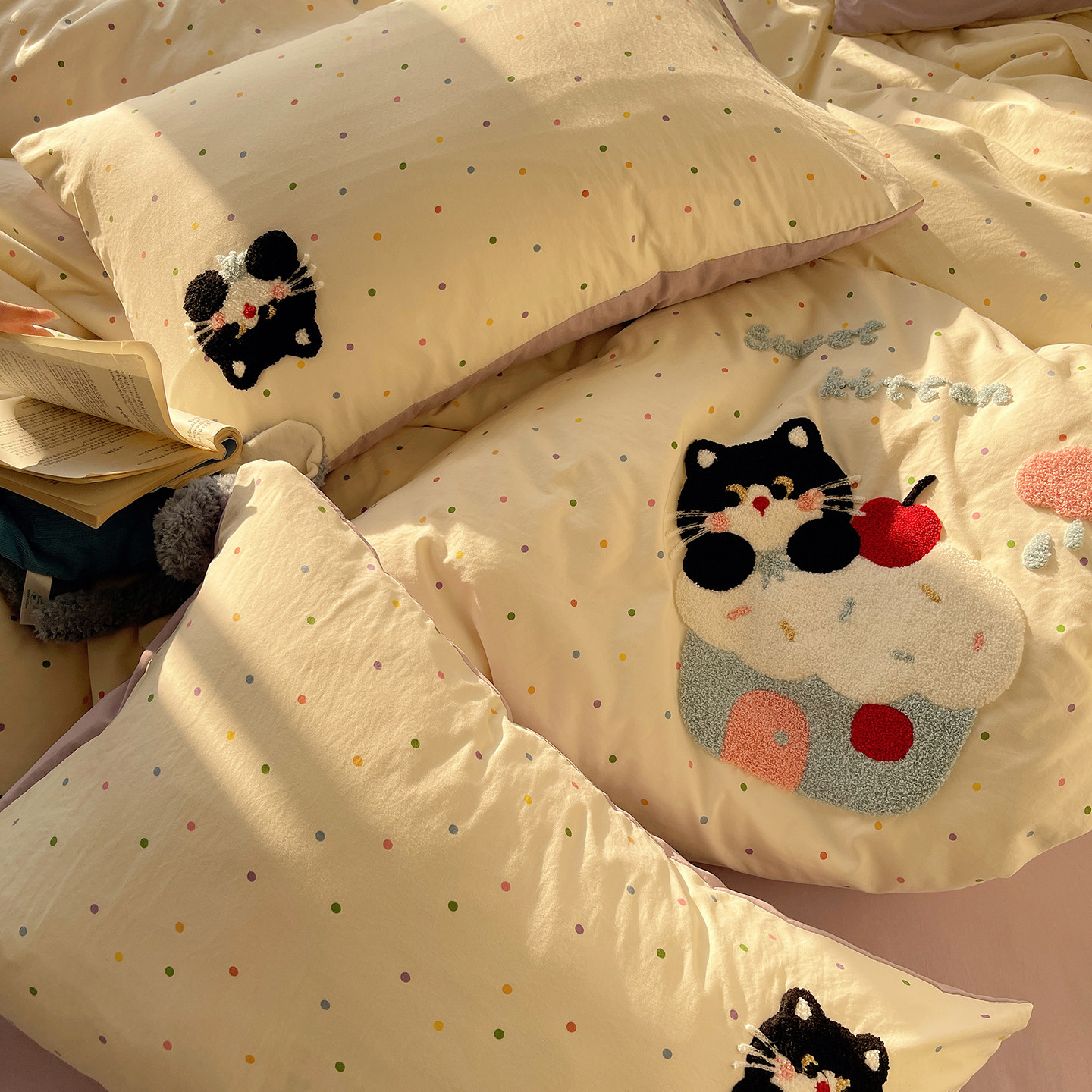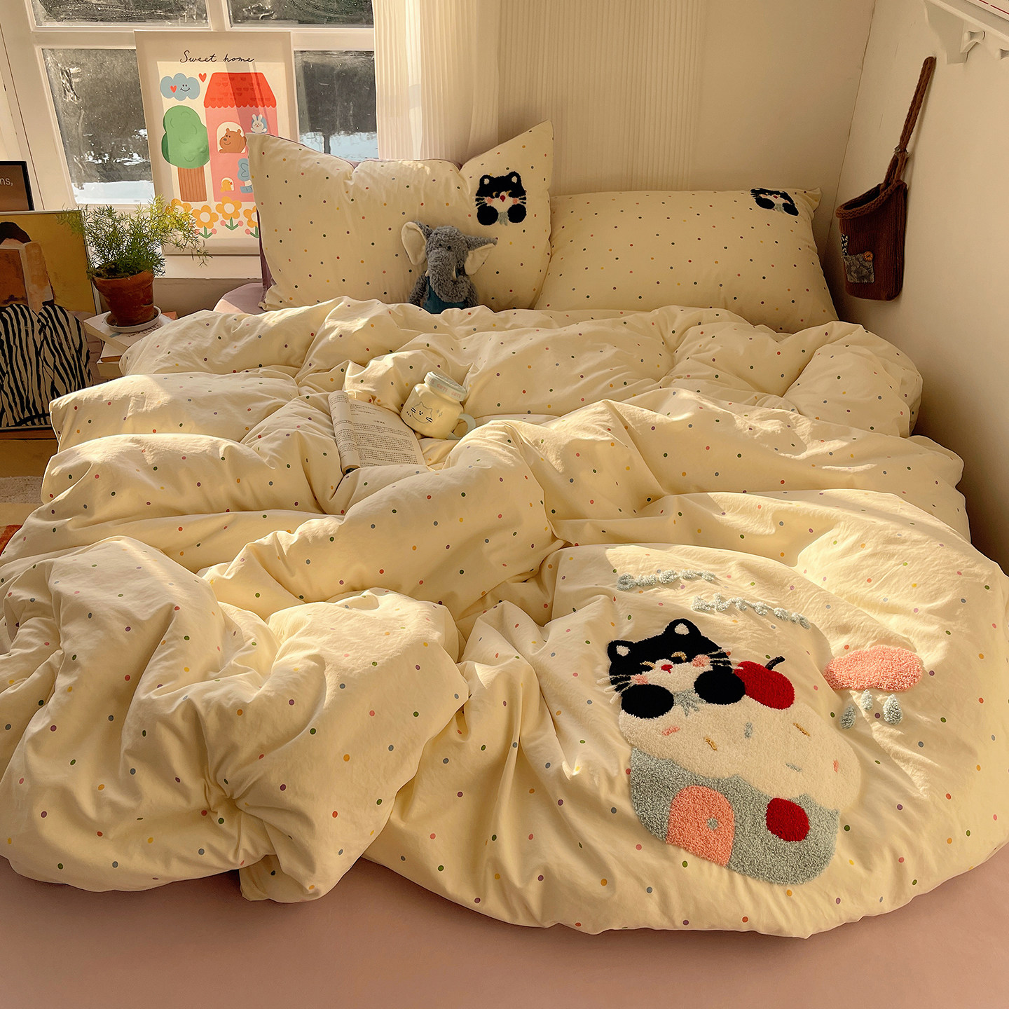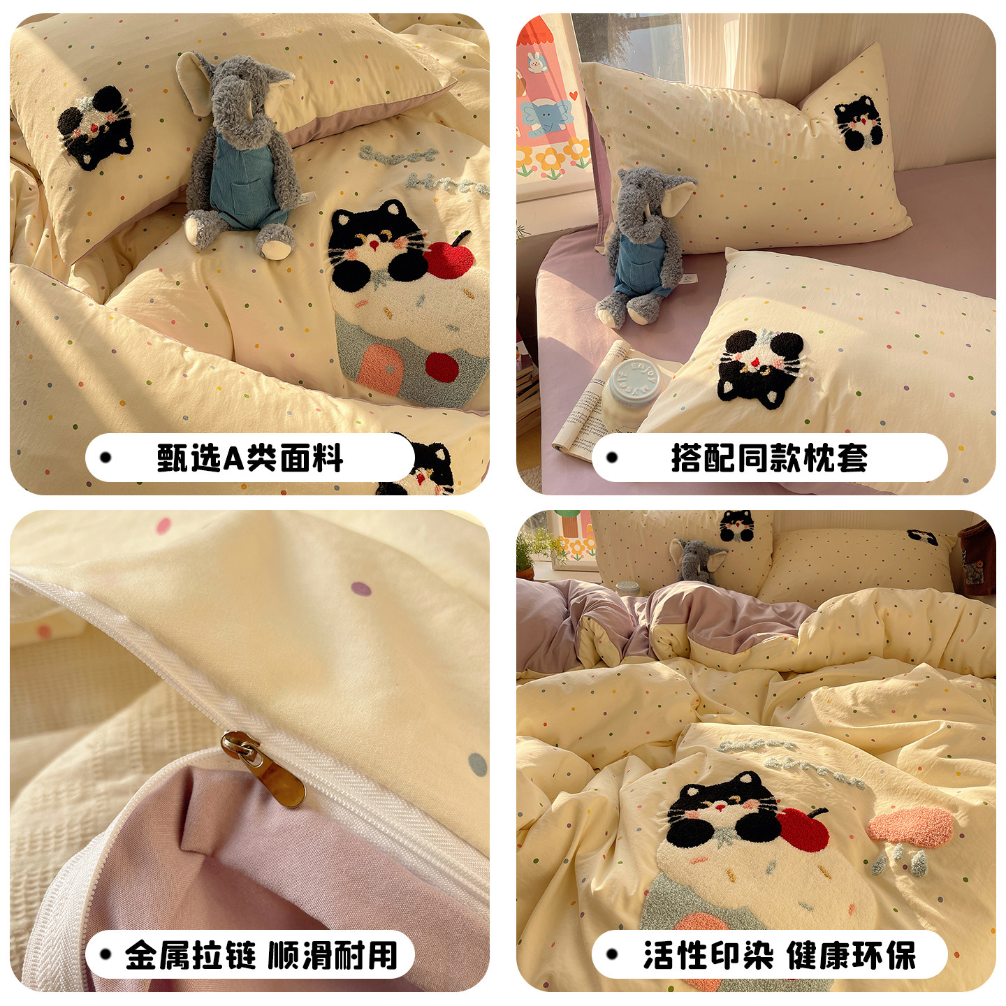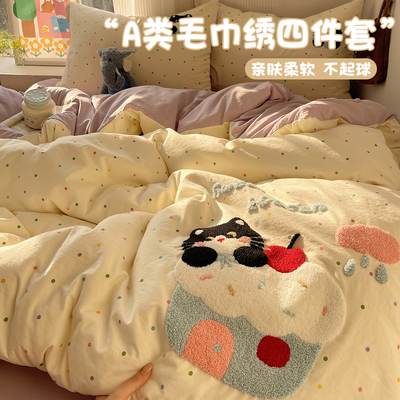 A类毛巾绣纯棉床上四件套全棉猫咪被套罩床笠学生宿舍床单三件套4
