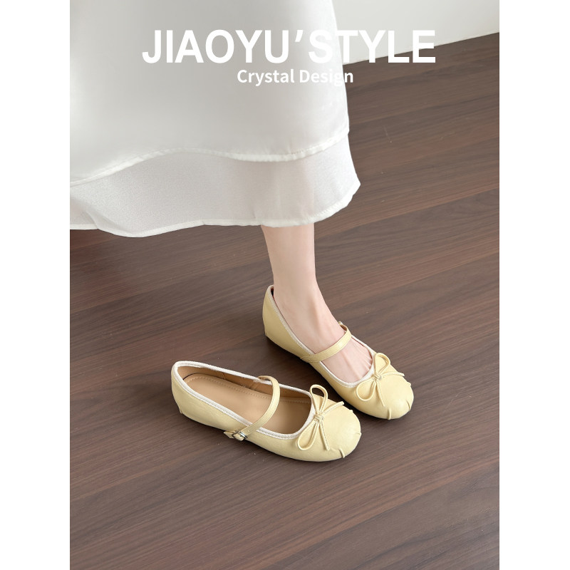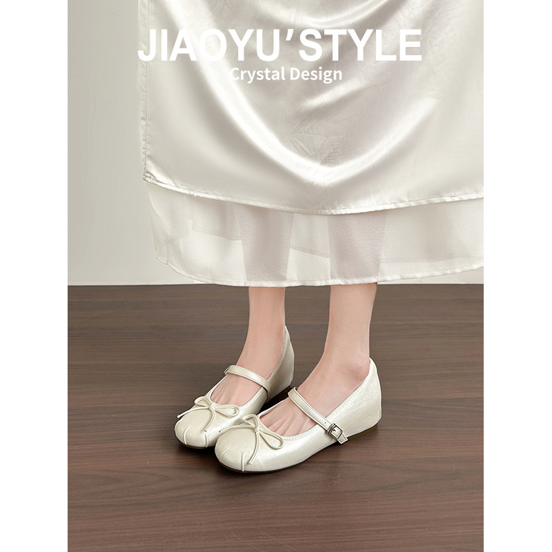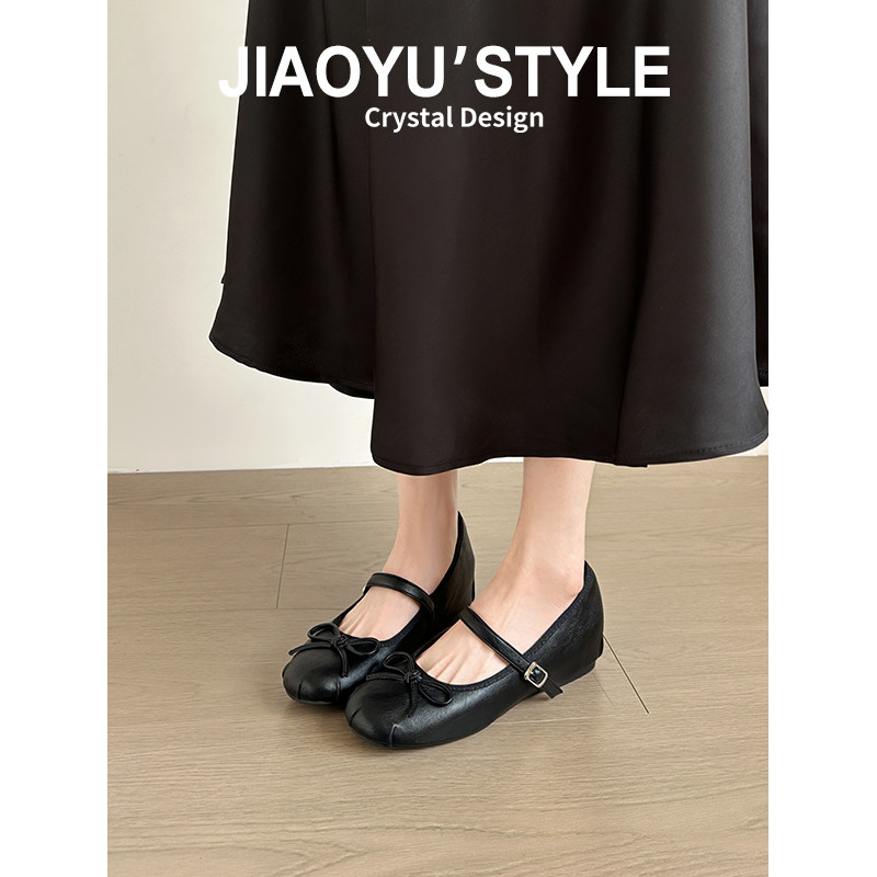 真皮~骄屿法式芭蕾玛丽珍高跟鞋女2026春新款蝴蝶结软底浅口单鞋