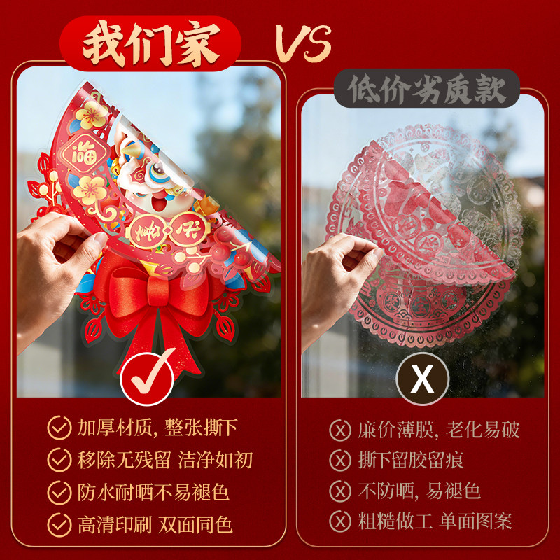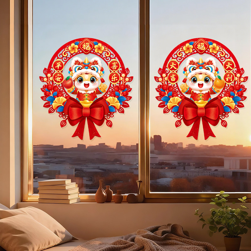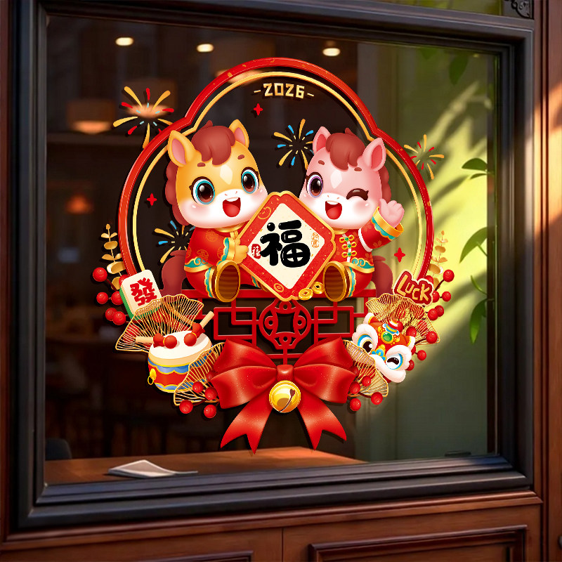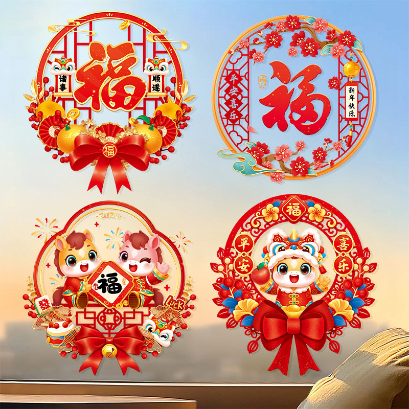 新年福字静电贴春节过年场景布置2026马年玻璃门贴纸窗花贴膜装饰