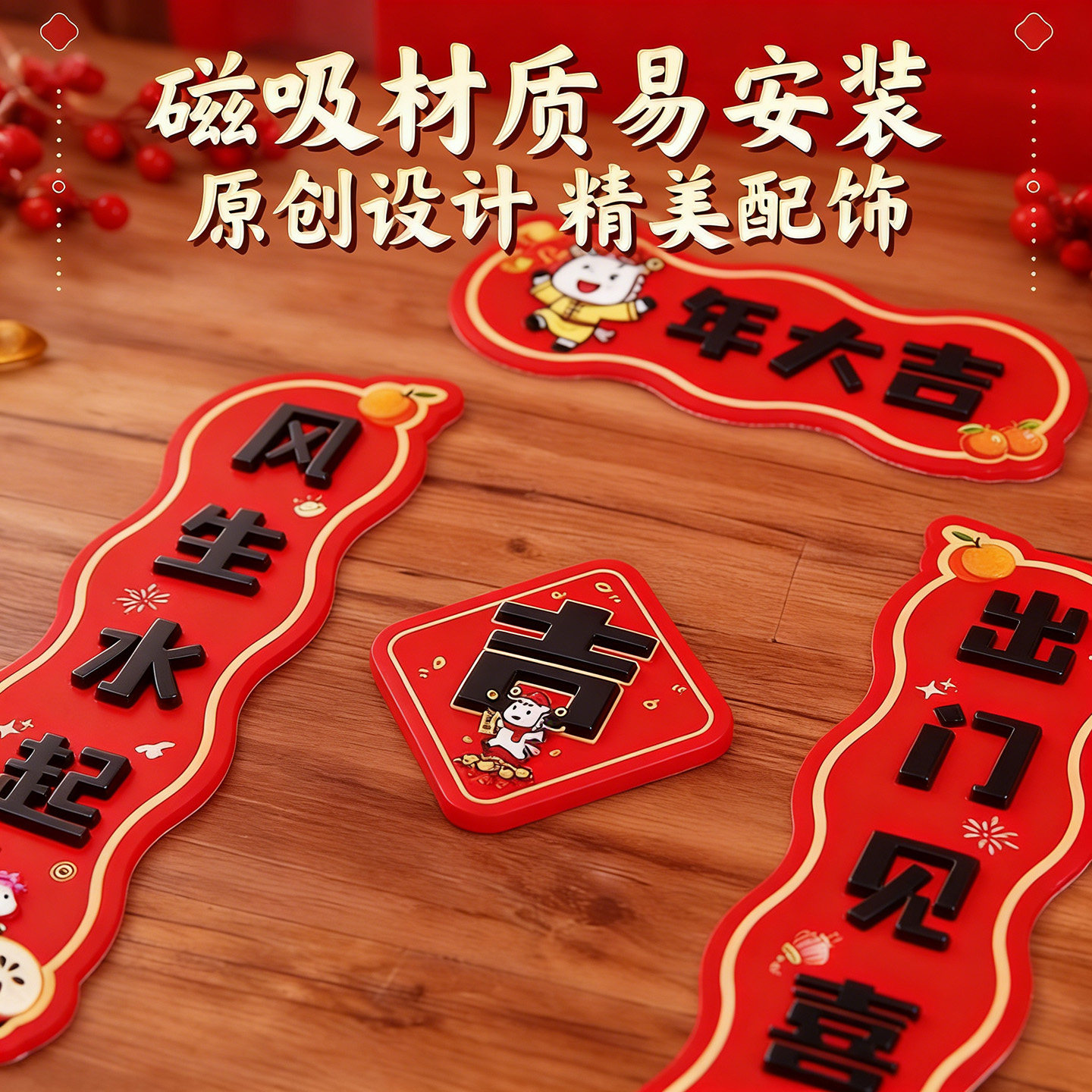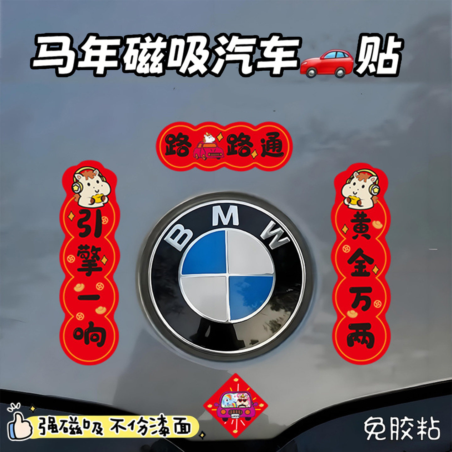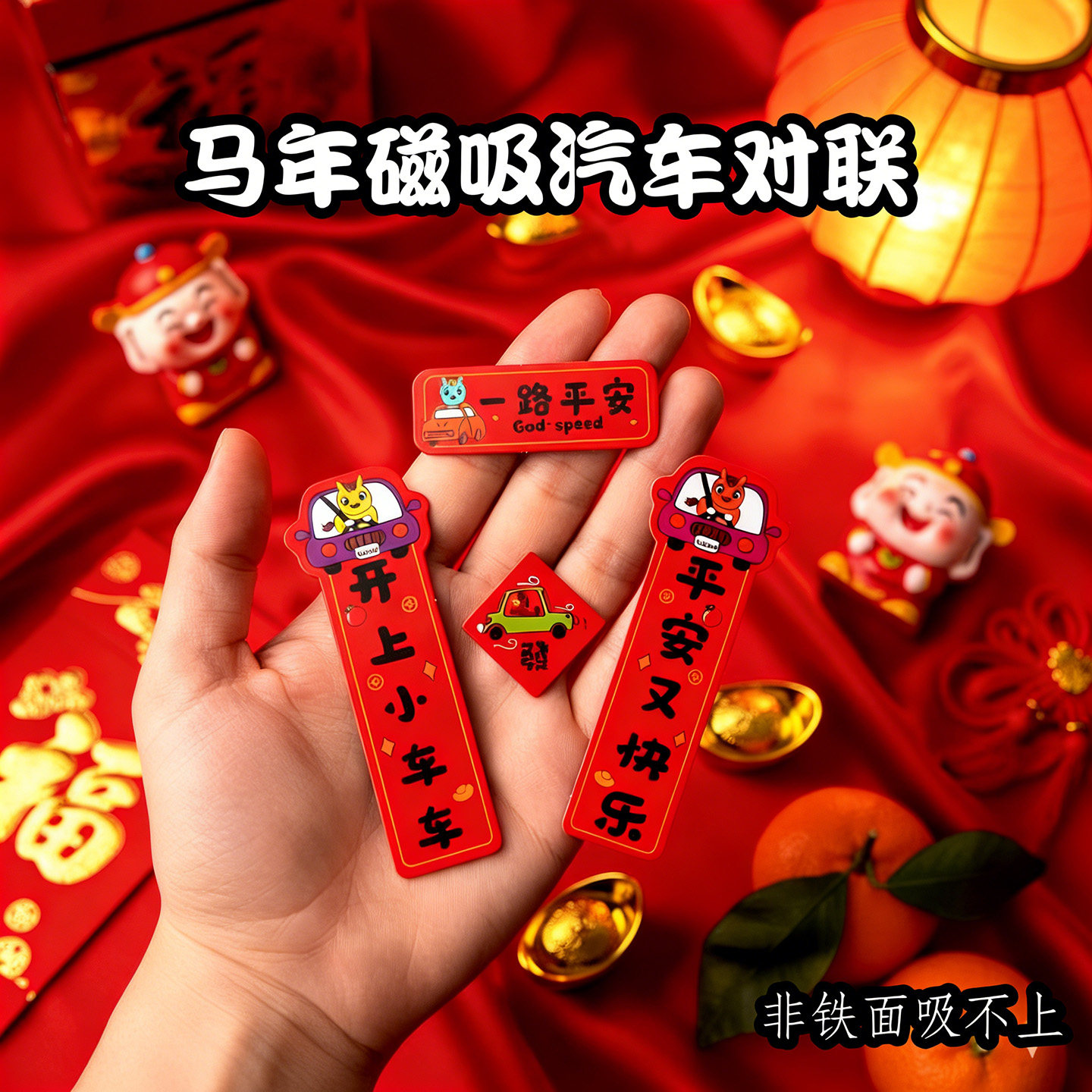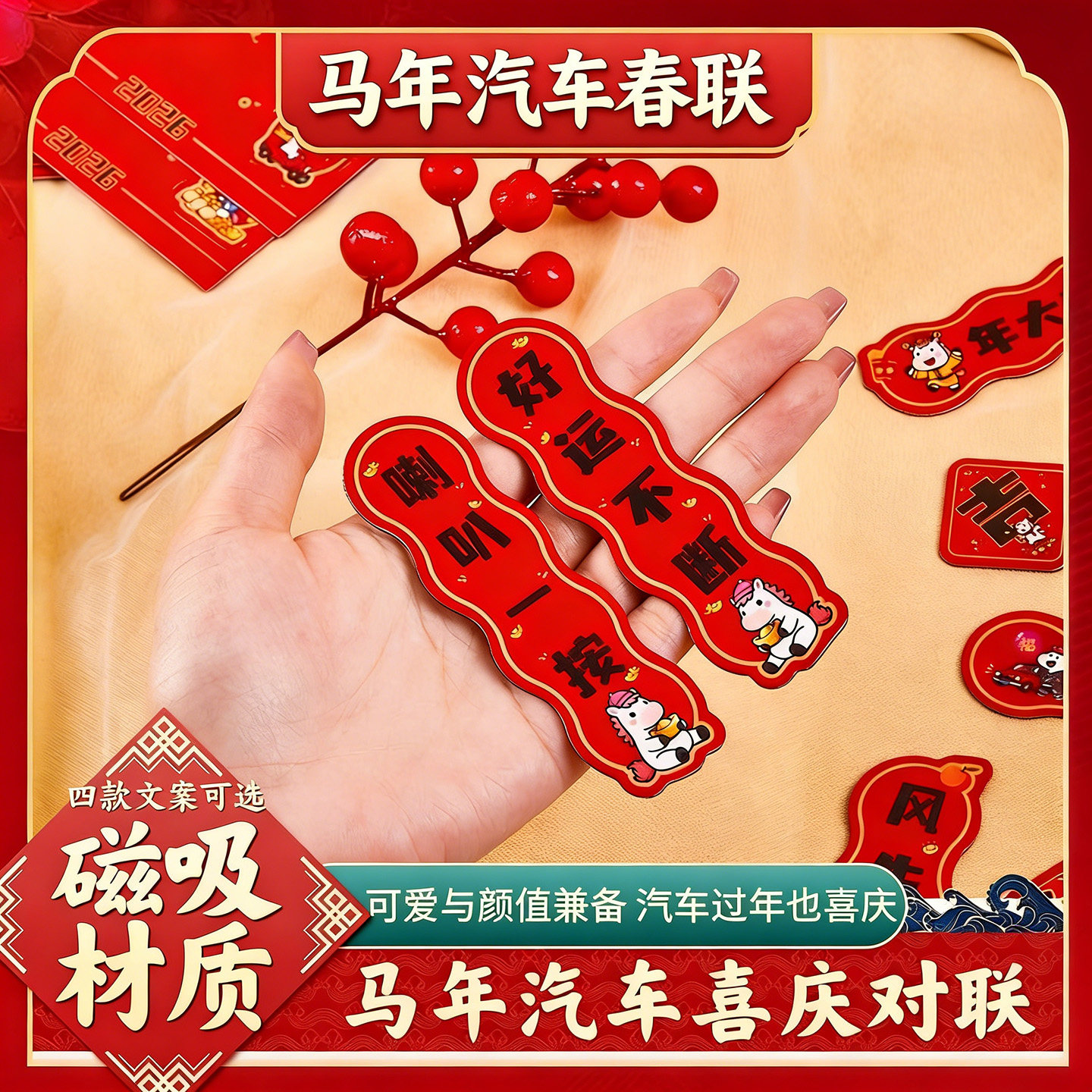 2026新款汽车对联车贴磁吸马年出入平安新年过年车上春联迷你贴纸