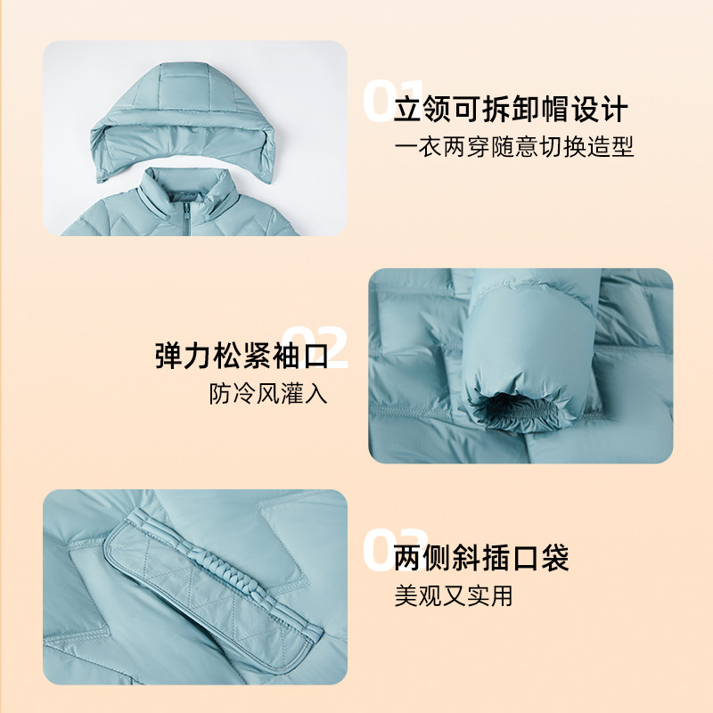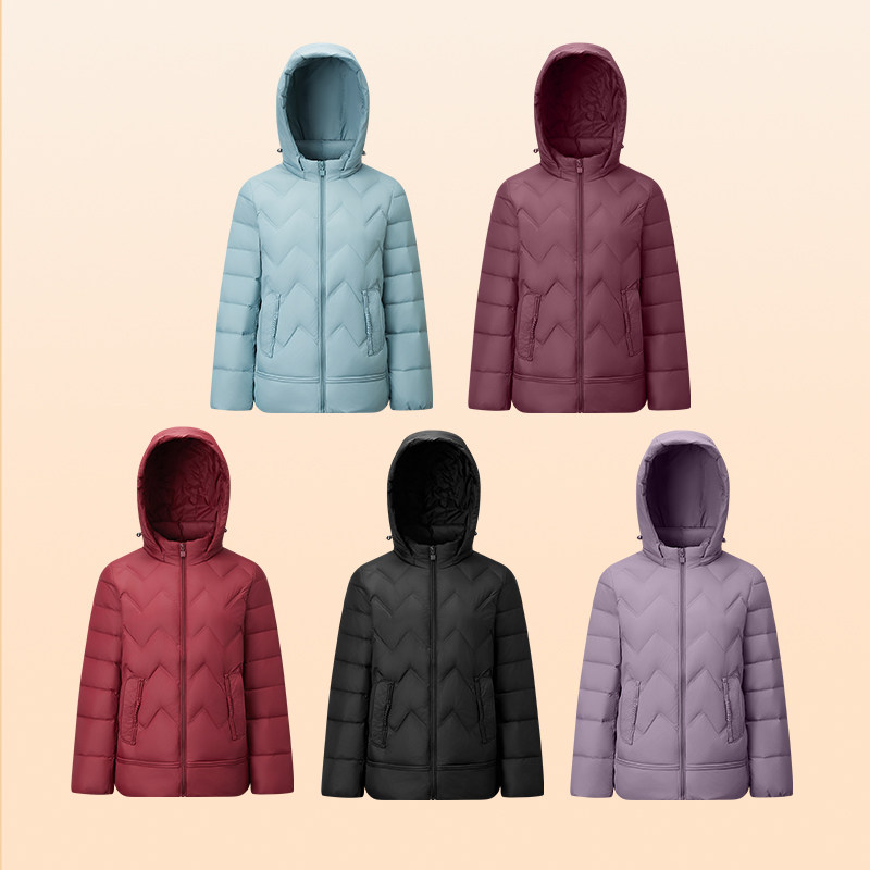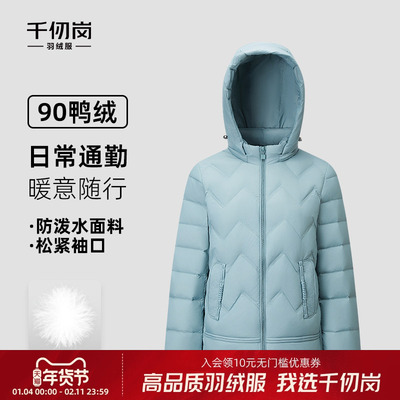 千仞岗2025新款秋冬短款羽绒服连帽保暖通勤纯色简约外套女款鸭绒