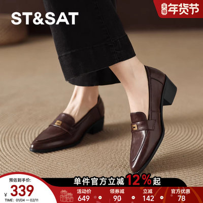 星期六官方旗舰店尖头粗跟乐福鞋女秋季新款