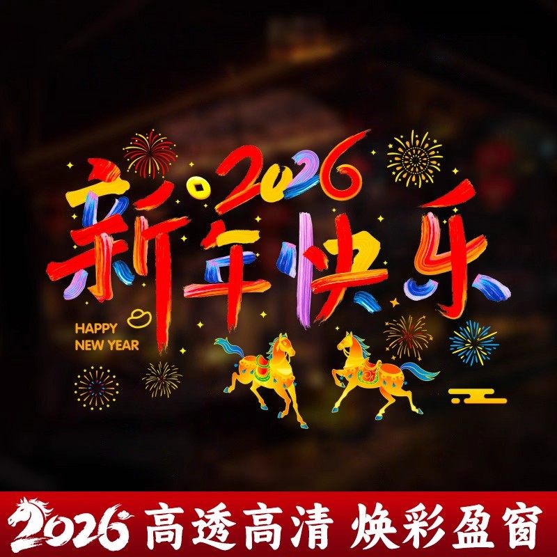 2026马年新款窗花门贴窗花静电贴纸店铺橱窗家用装饰窗花玻璃贴纸
