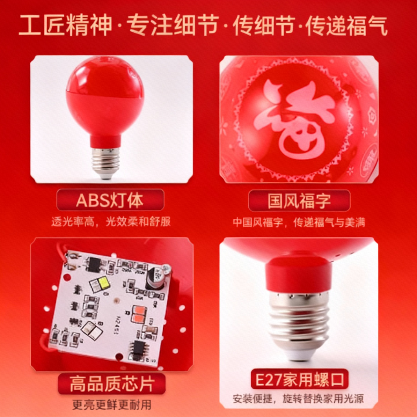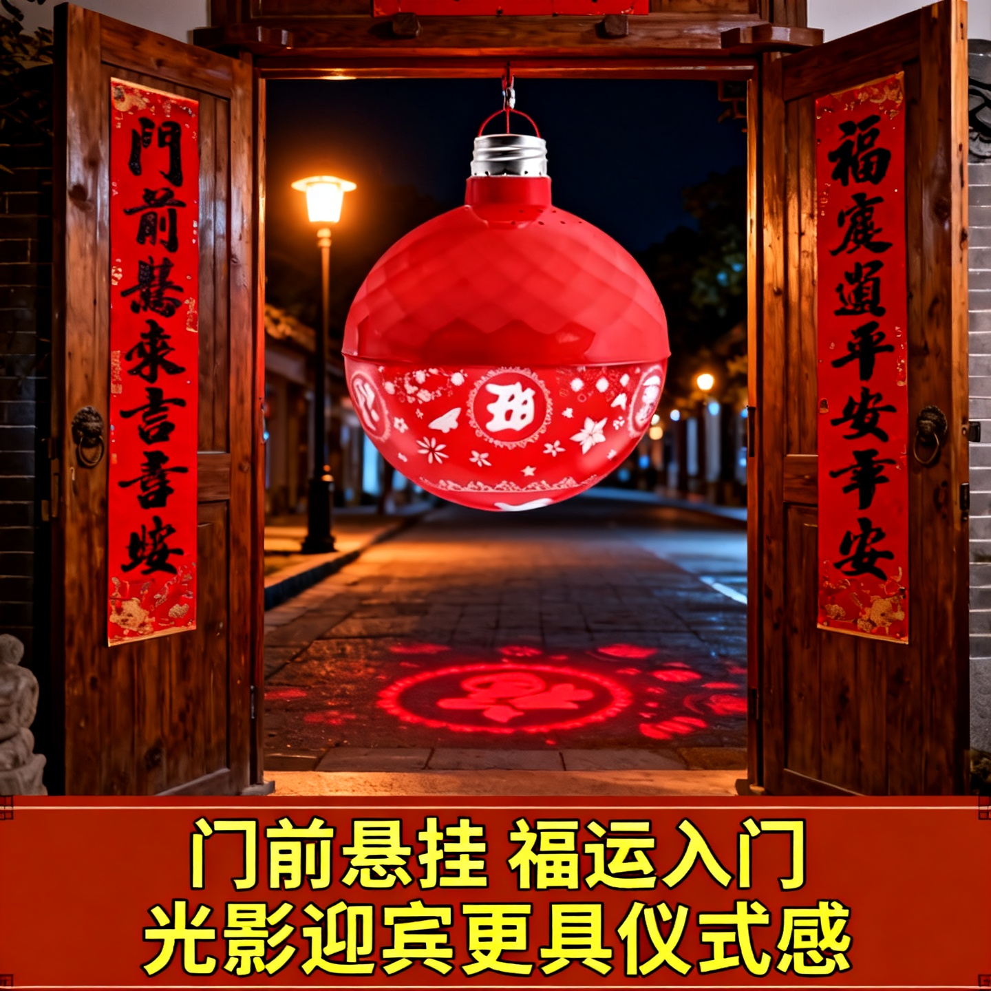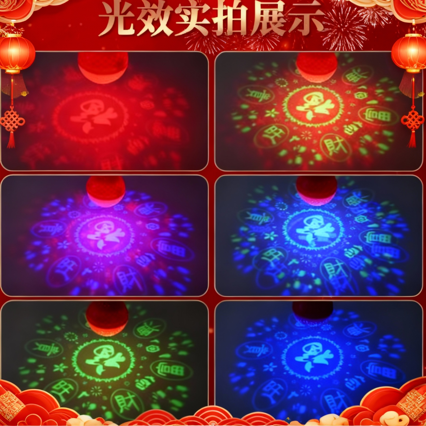 七彩福字灯泡彩灯氛围装饰灯旋转变色春节过年喜庆发财灯农村院子