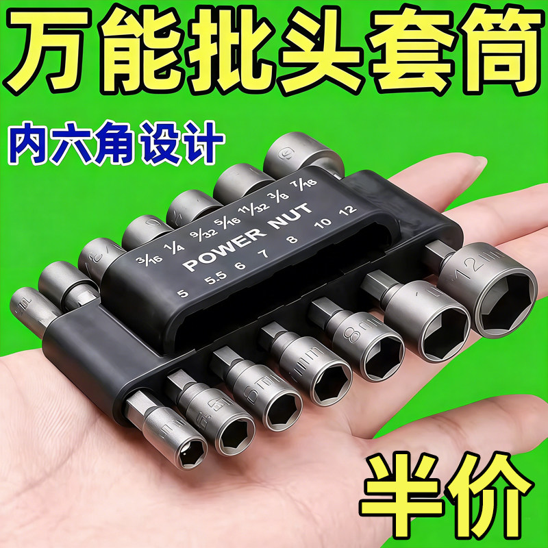风批套筒六角柄套筒头手电钻气动风批套头电动批头自攻螺丝14件套