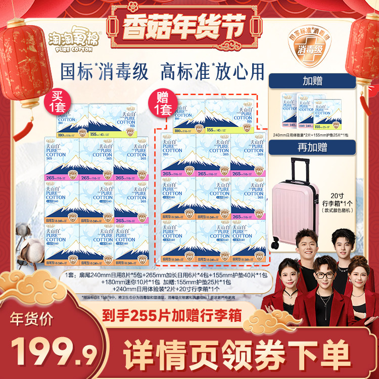【香菇超级年货节】淘淘氧棉天山白消毒级小扇尾纯棉卫生巾组合
