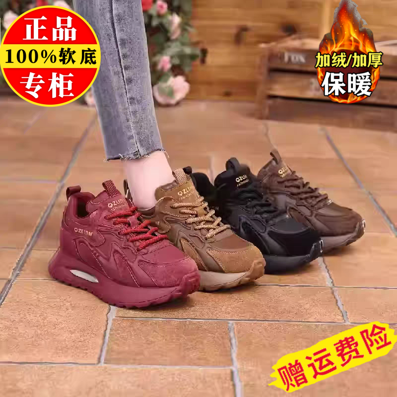 品牌真皮加绒保暖棉鞋女2025冬季新款厚底防滑休闲运动鞋子雪地靴