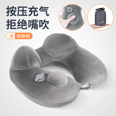 旅行按压充气u型枕脖子枕头便携长途飞行颈椎护颈枕飞机睡觉神器