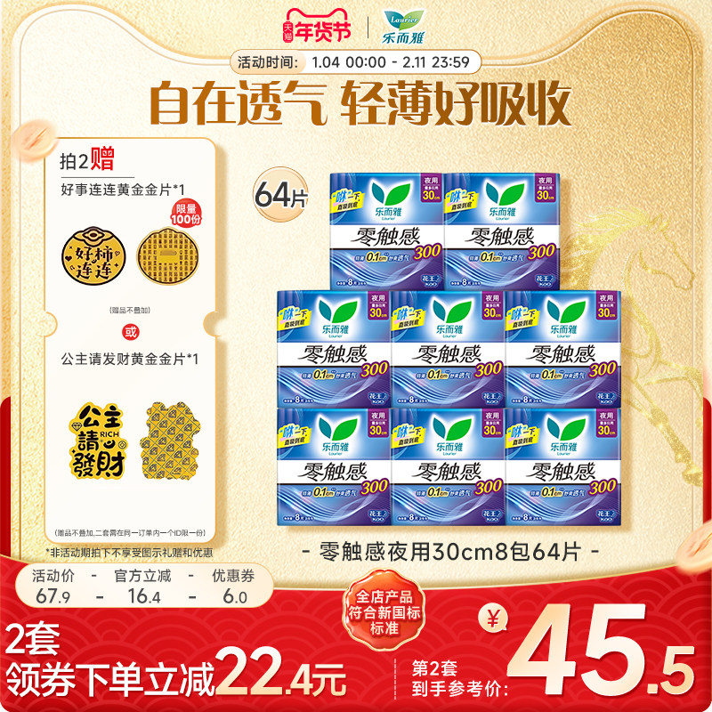 【年货立抢】花王乐而雅卫生巾零触感夜用组合姨妈巾8包64片