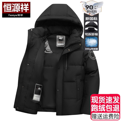 恒源祥彩羊鹅绒羽绒服男士2025冬季新款加厚保暖短款极寒男装外套