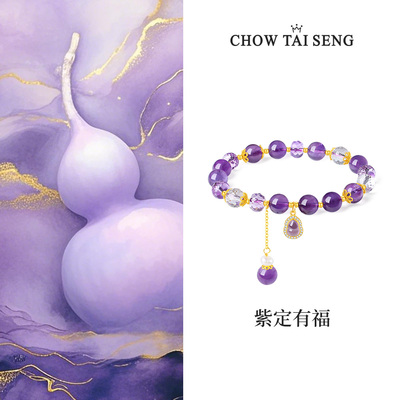 周大生紫定有福紫水晶手串银葫芦珍珠手链新中式生日礼物送女友