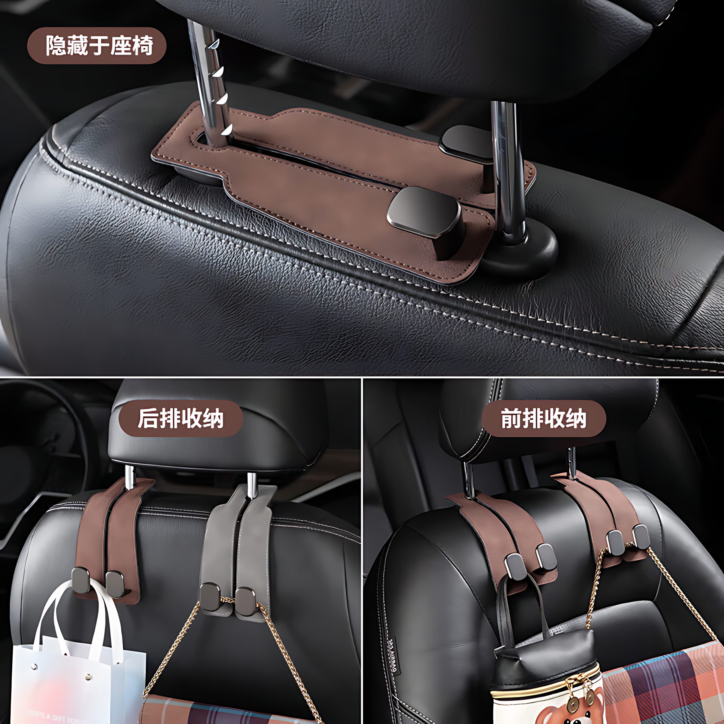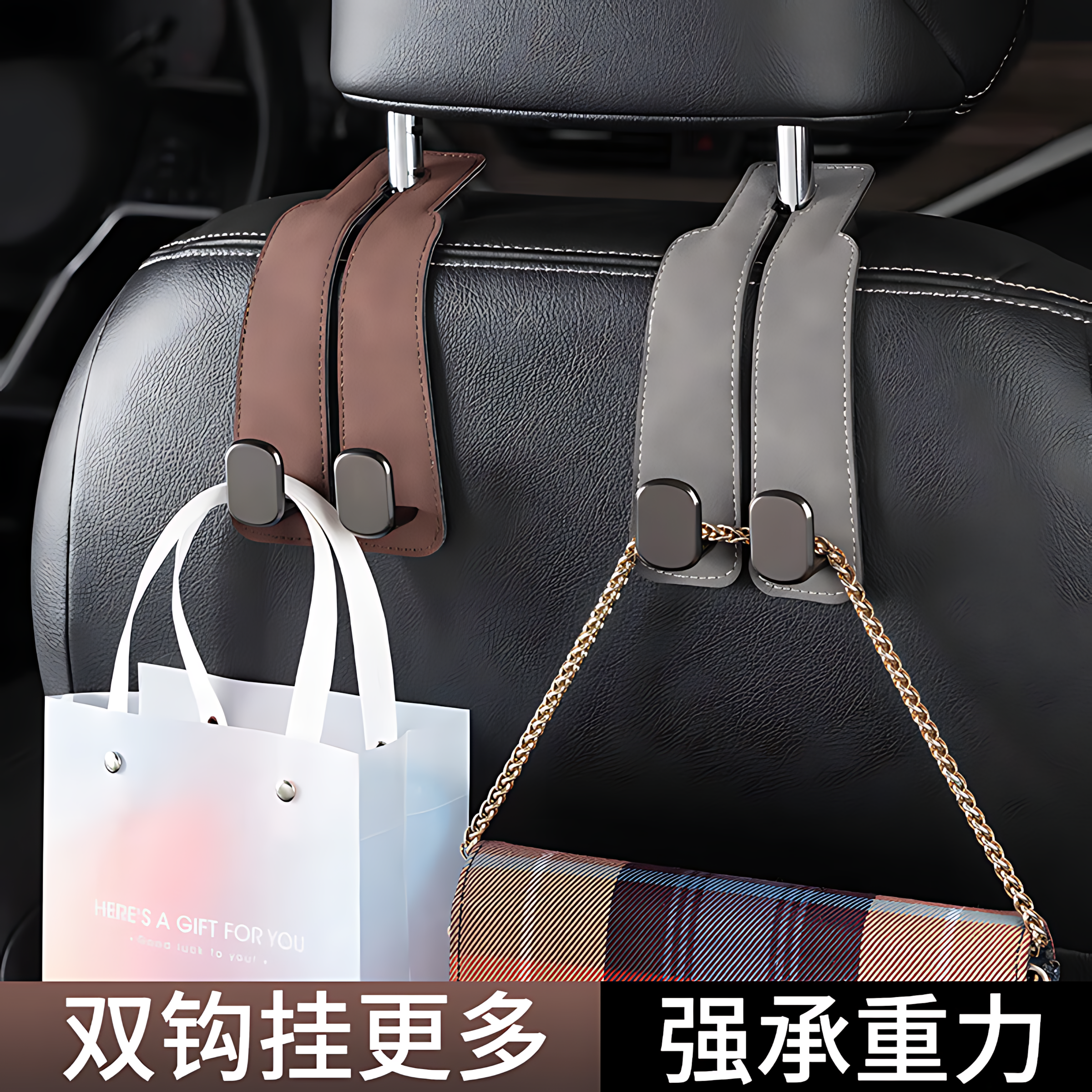 汽车挂钩车载座椅背升级隐藏双挂钩翻毛皮后排车内用包包储物挂钩