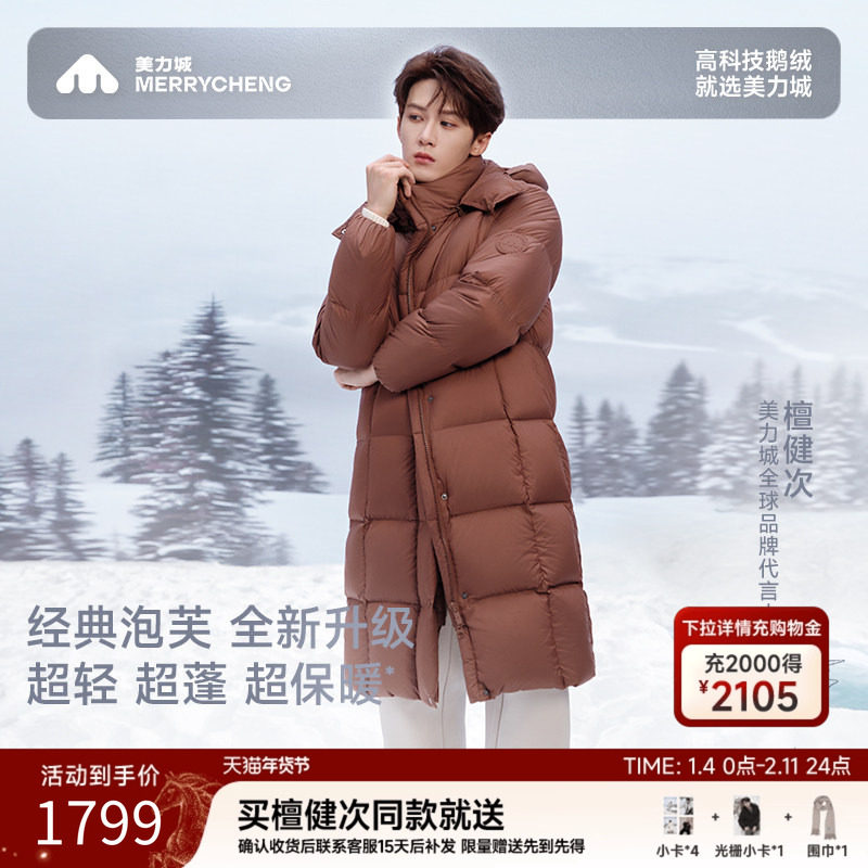 【檀健次同款】美力城暖天鹅鹅绒羽绒服泡芙保暖中长款外套女110