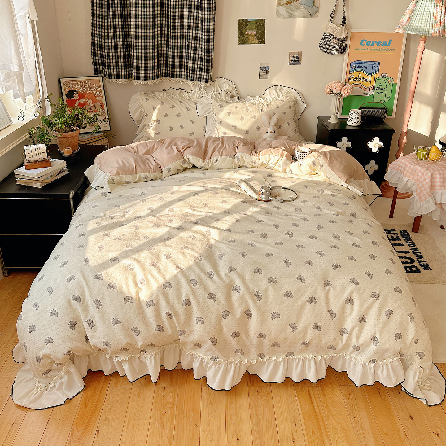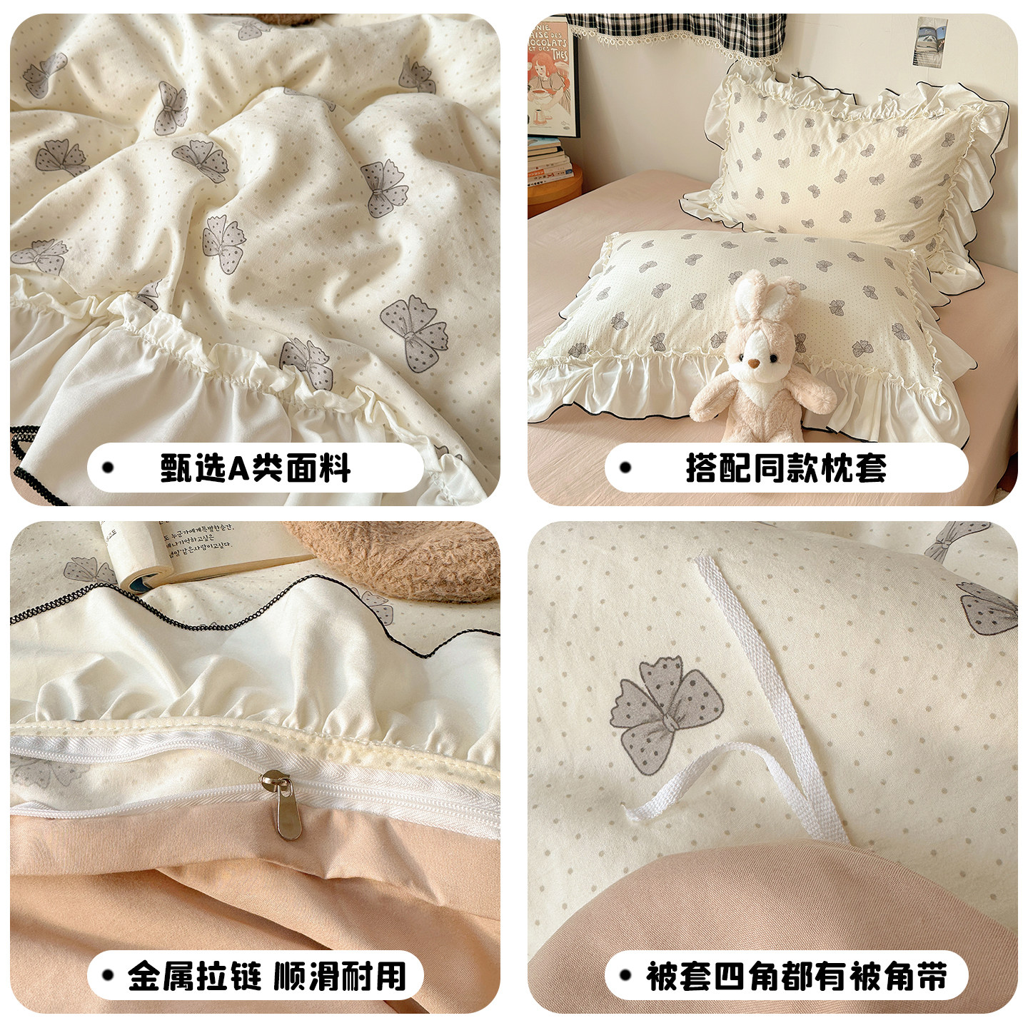 法式花边床上用品四件套纯棉全棉A类被套床单被罩床笠宿舍三件套4