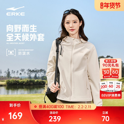 鸿星尔克外套女款冬季新款女士加绒软壳冲锋防风夹克运动风衣女装
