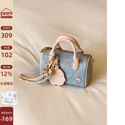 南风Chio2nd 面包小狗 柔粉晨光枕头包包女牛仔蓝布包单肩斜挎包