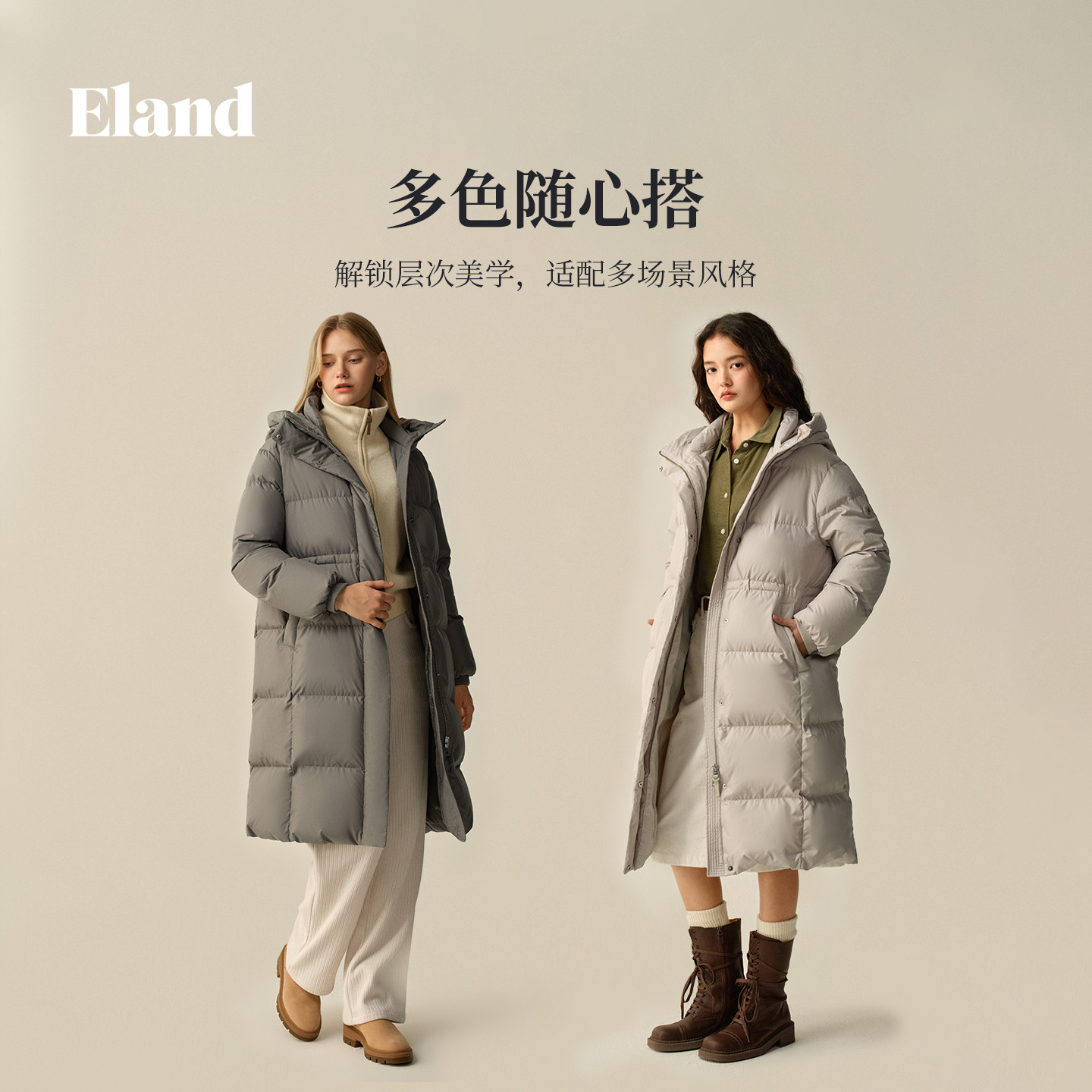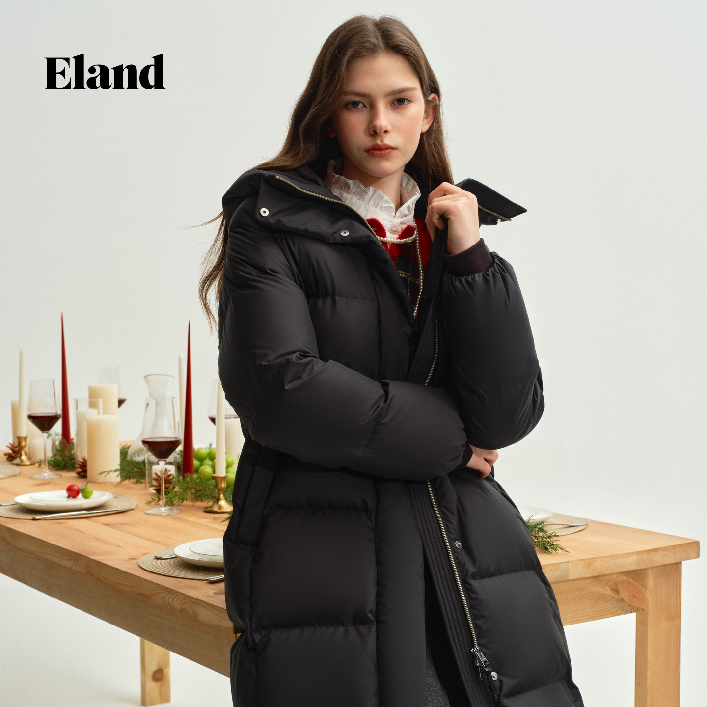 【鹅绒】Eland衣恋羽绒服女中长连帽极寒浴袍式鹅绒外套2025冬新