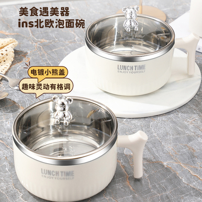 碗家用2025新款泡面碗带盖不锈钢碗饭碗双耳汤碗大碗面碗螺蛳粉碗
