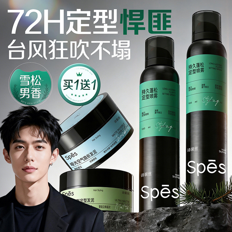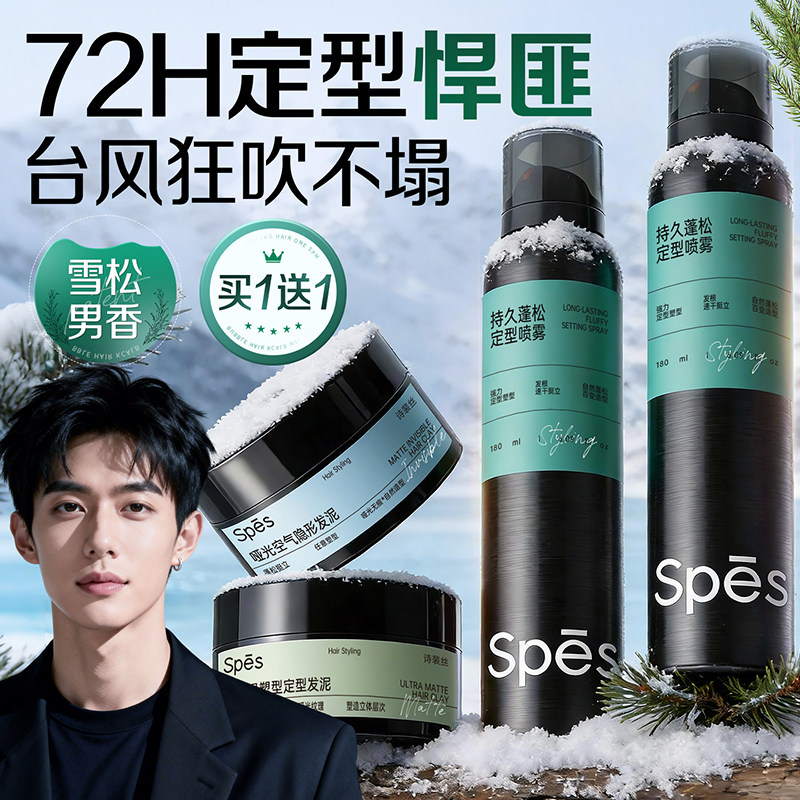 Spes发胶定型喷雾男士持久造型自然蓬松发泥发蜡保湿啫喱头发干胶