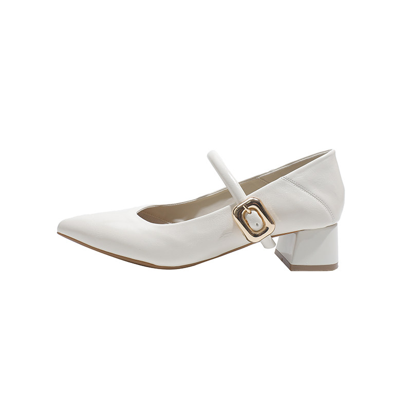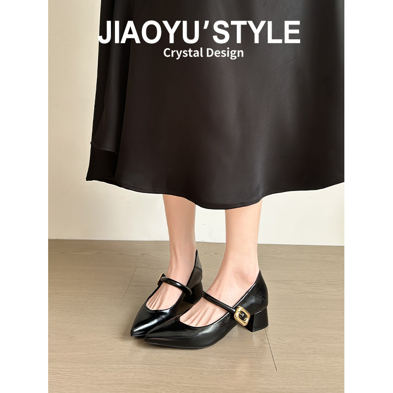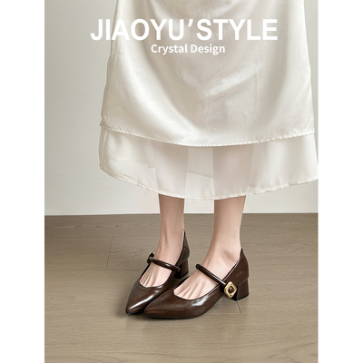 真皮~骄屿法式尖头玛丽珍高跟鞋女不累脚内增高新款浅口通勤单鞋