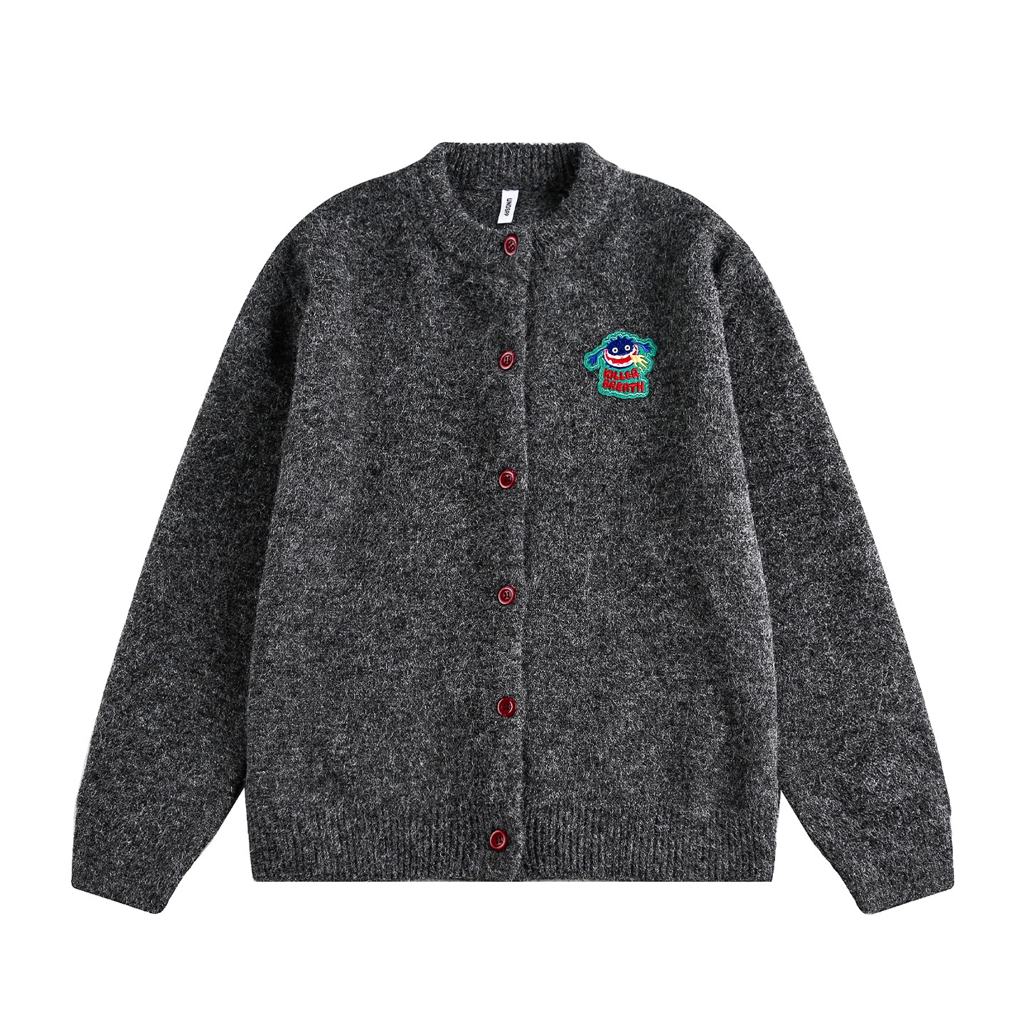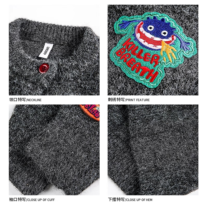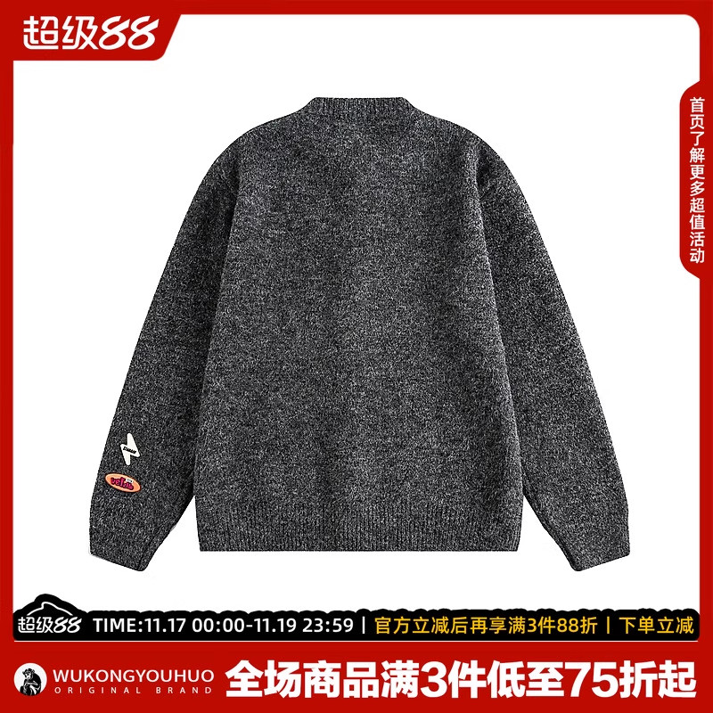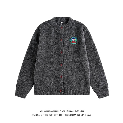 悟空有货复古刺绣高级感开衫毛衣男慵懒风灰色情侣休闲针织衫外套