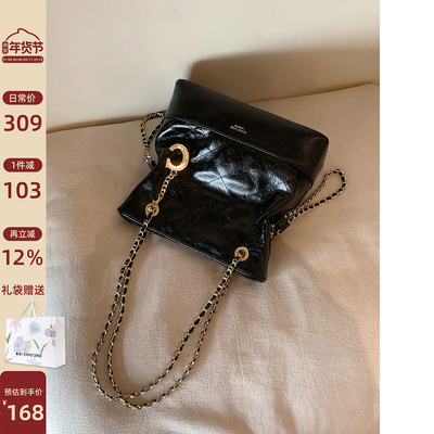 南风Chio2nd 摩登晚宴托特包精致斜挎小包包女黑色时髦通勤链条包