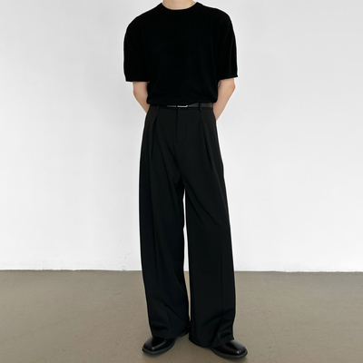 男笙 【高品质TR色纺不掉色加绒西裤】冬季三本针压褶A字阔腿西裤
